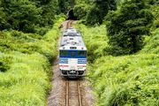 福島県会津若松駅から新潟県小出駅までを結ぶJR只見線。 2011年の豪雨から不通となっている会津川口駅~ 只見駅間の両側で折り返し運転中の只見~小出間路線。 大白川駅~只見駅間のR252上から撮影。