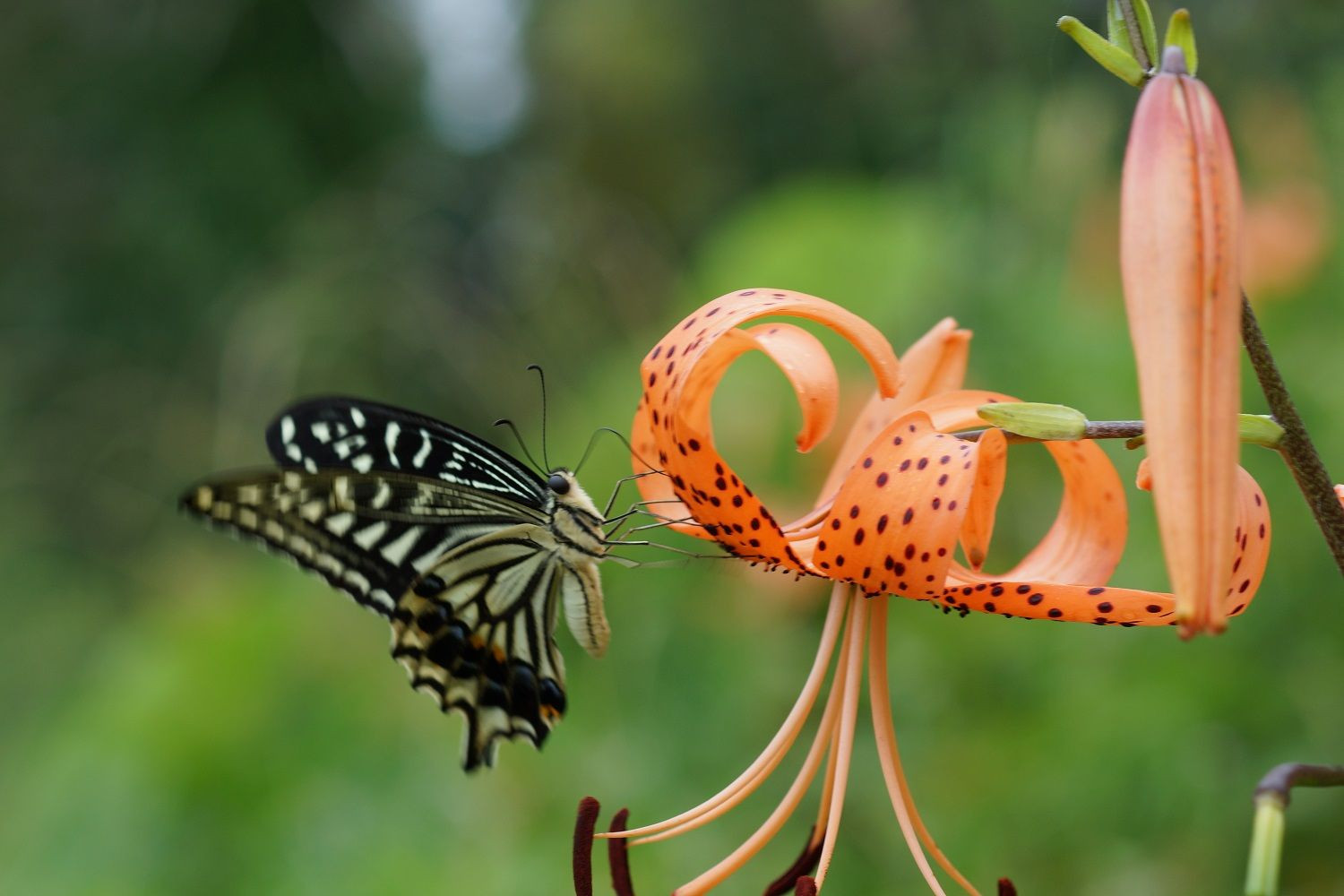 散歩中アゲハチョウが頭の上を飛び行方を追っていくと鬼百合が満開でした