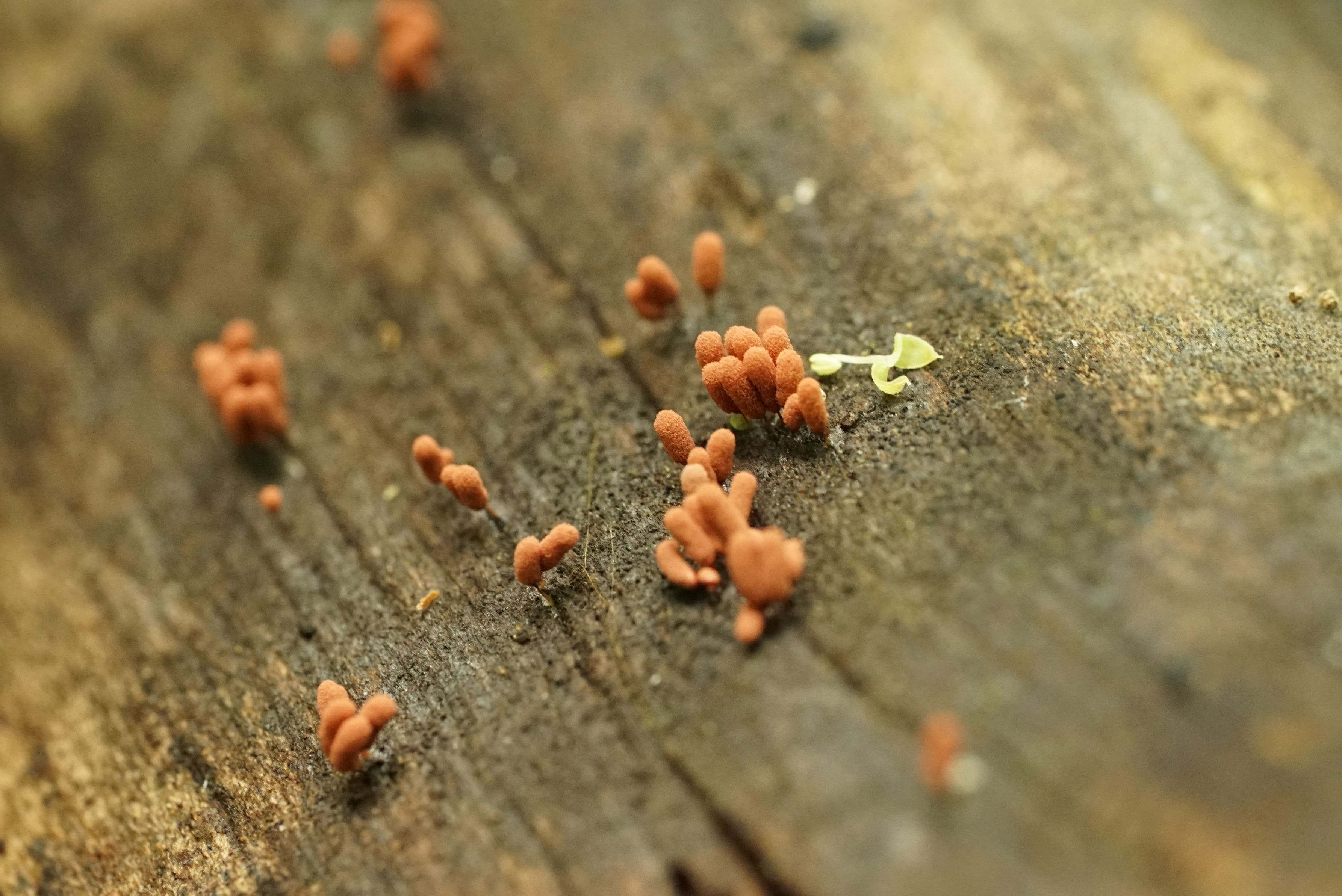 キノコを探していると粘菌を見つけました。