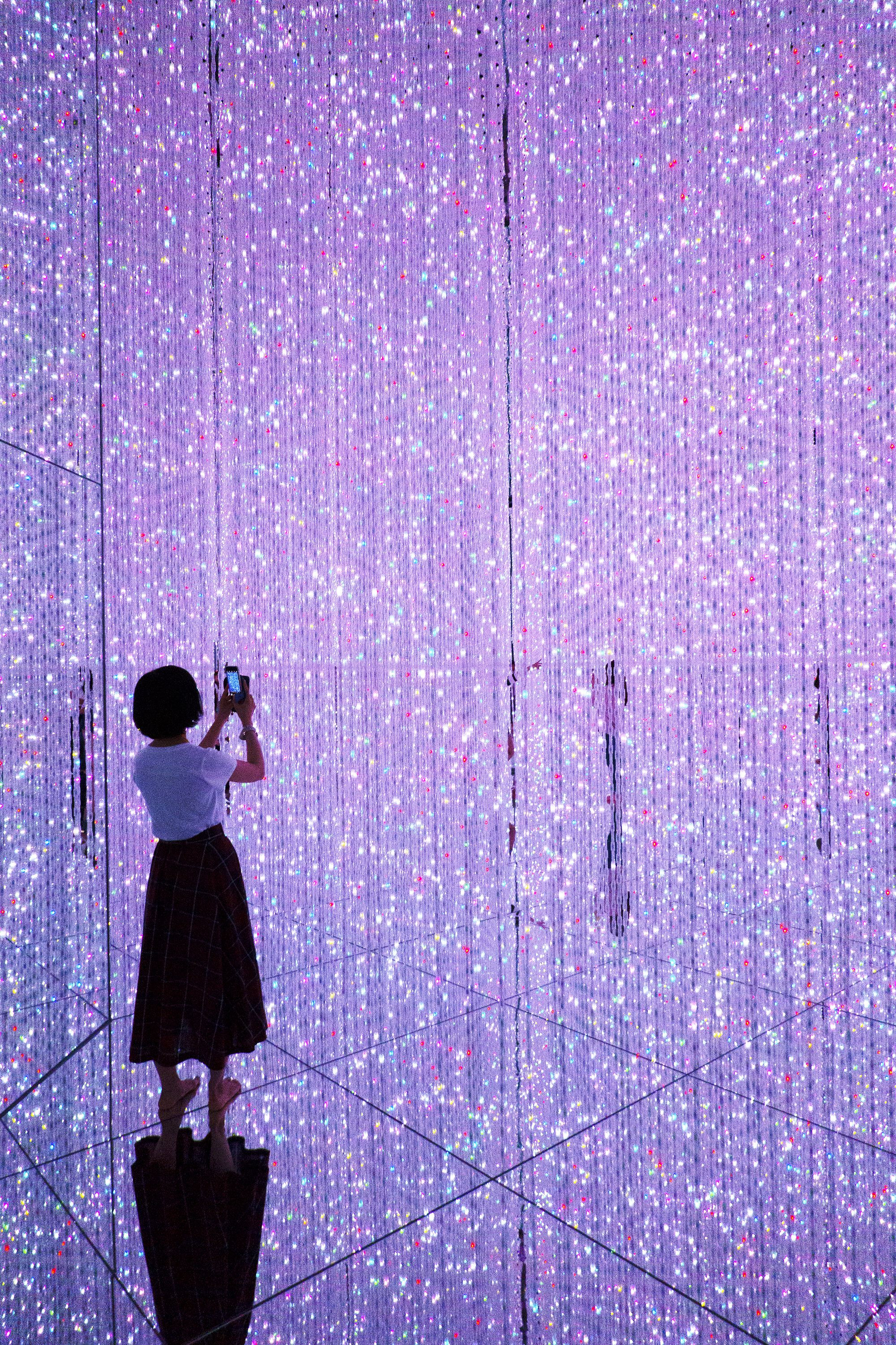 「インスタ映え」を狙う女性 東京都江東区豊洲 「チームラボ プラネッツ TOKYO DMM.com」にて