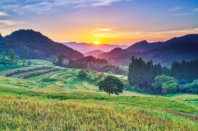 鴨川市の大山千枚田。朝日が顔を出したところです。