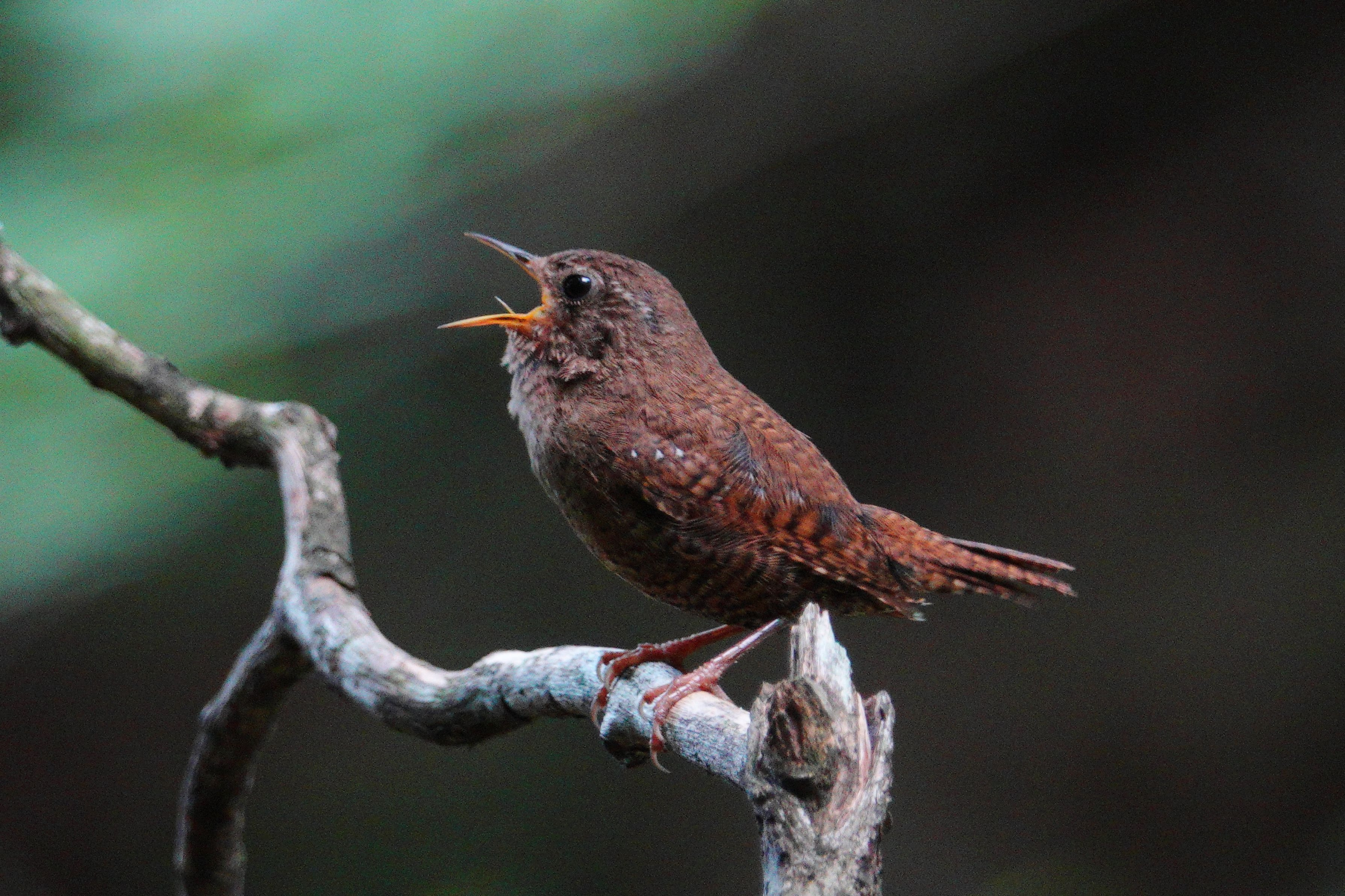 渓流の小枝でミソサザイが一生懸命、囀ってましたが小さくてなかなか姿が見えずソロリソロリ声のする方へ近づき撮影。暗くて手持ちギリギリでのショットですが結構近いのでもう少し絞りたかったです。