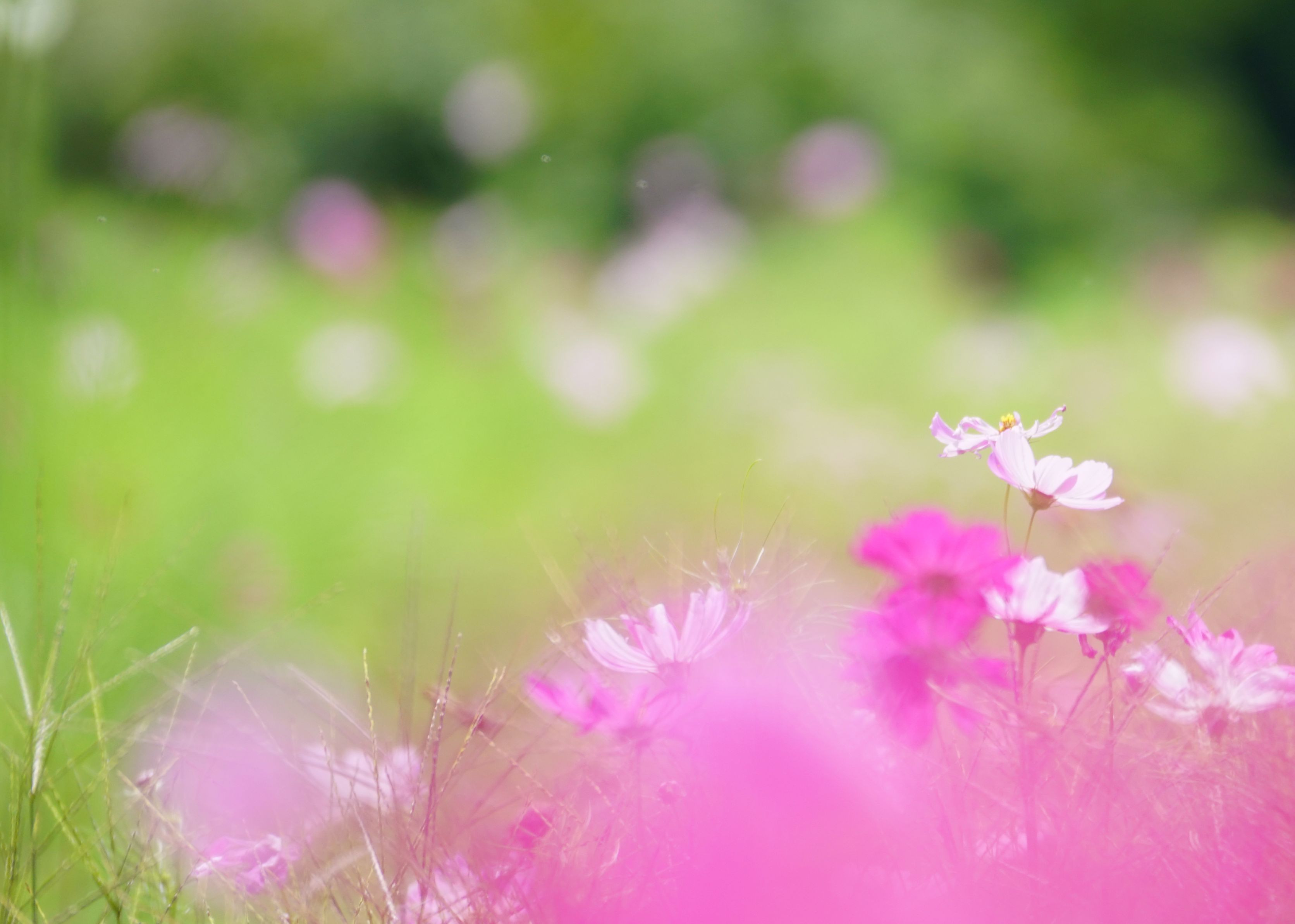 今年も月山高原にコスモスが咲き天候不順の中晴れ間をみて やっと撮って来ました。前ボケを強調してみました。