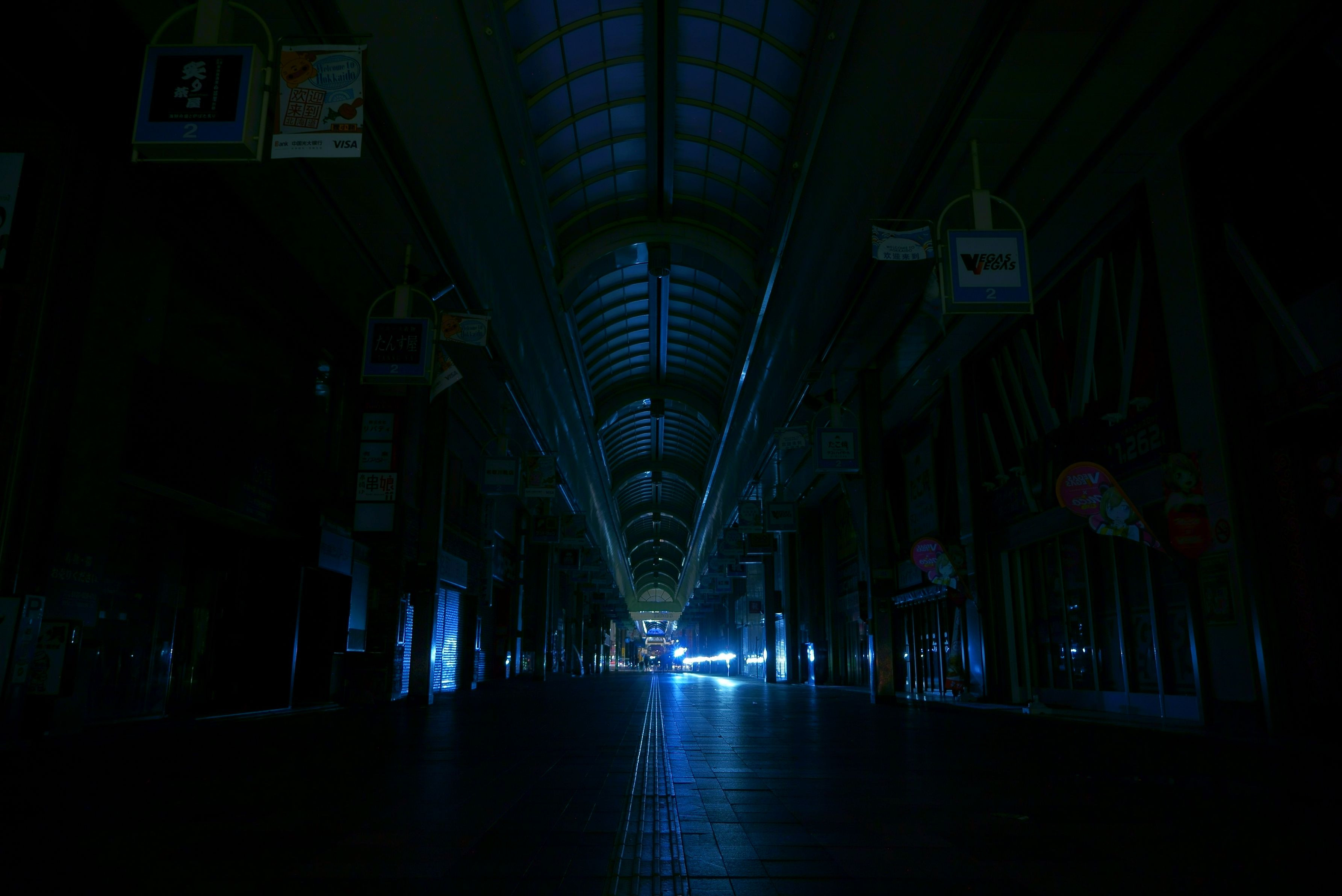 震災・停電直後の札幌狸小路です。