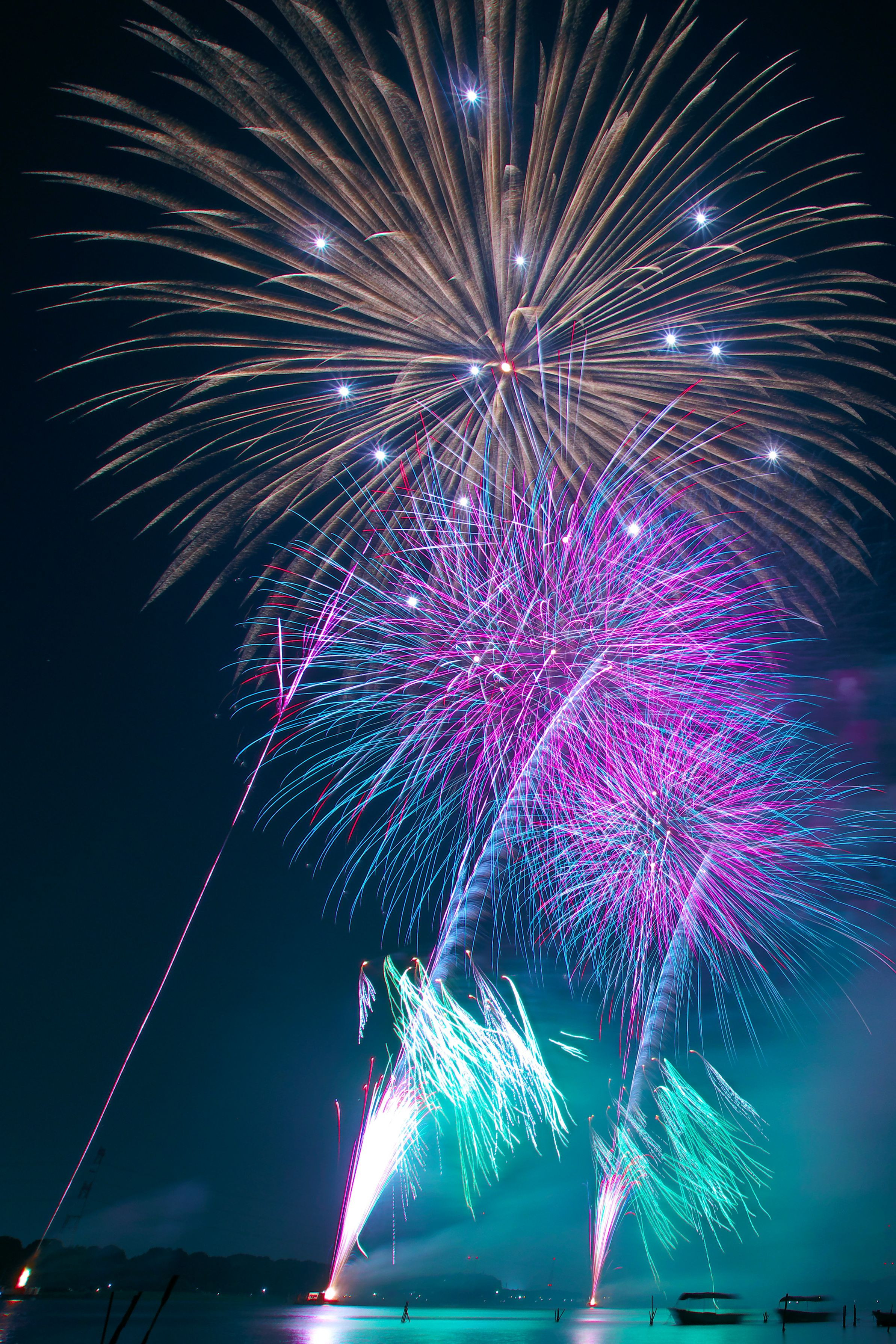 2018-08-04 千葉県我孫子市 初めて行った手賀沼花火大会 柏市の花火大会と同時開催ですが、同じ頃に始まって同じ頃に終わるといった程度です。有料席Aからの観覧です。3枚目が席の様子です。尺玉は土浦の有料席から見るよりも大きい感じで迫力がありました。