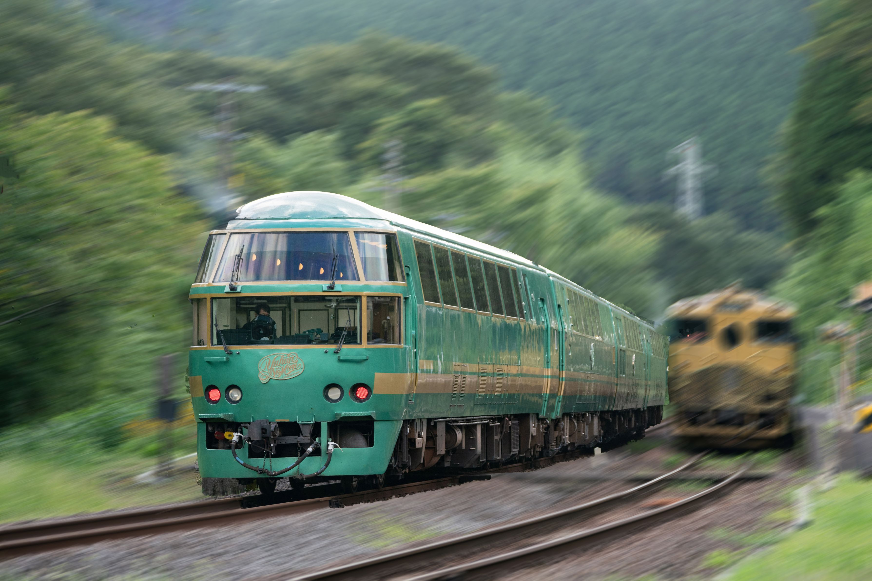 昨年の九州北部豪雨でJR九州久大線の鉄橋が流失し普通になっていましたがこのたび開通して特急「ゆふいんの森」とスイーツ列車「或る列車」の離合が見られるようになりました。