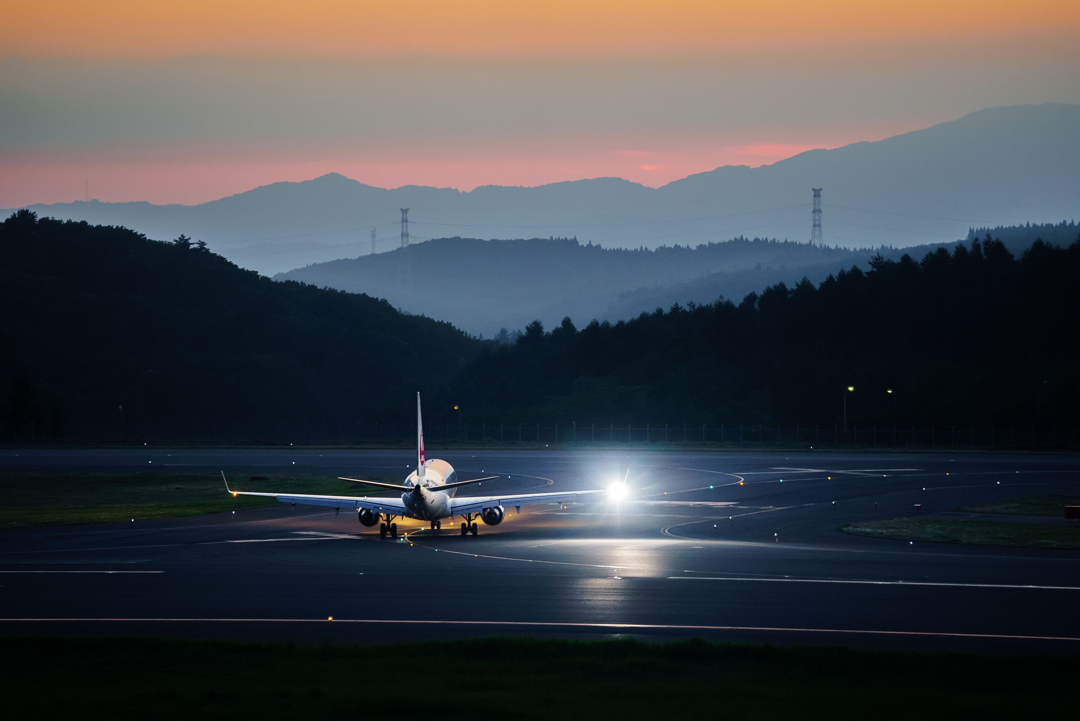 薄暮の滑走路に一筋の閃光が走る。