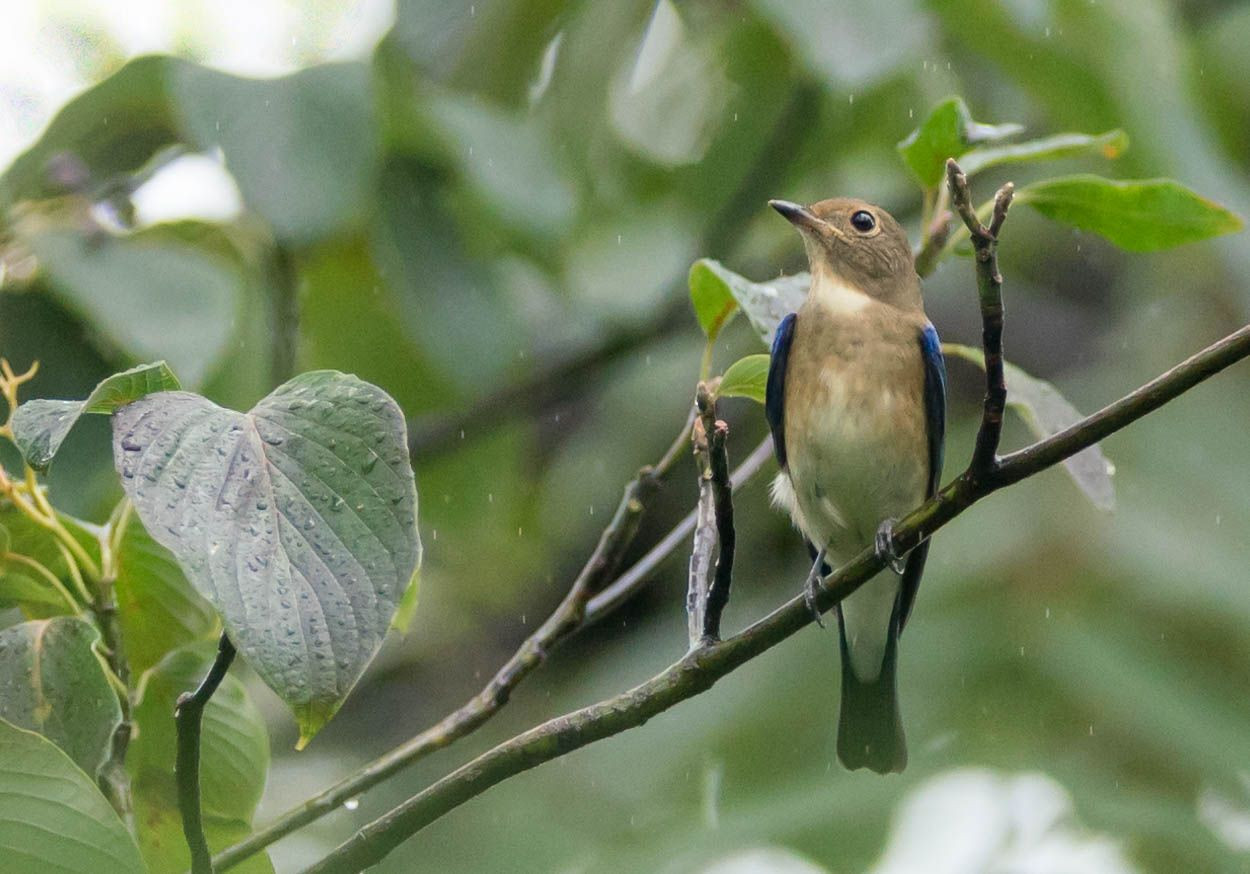 早朝から天気予報通り、雨が降っていた。 遠路遥々やってくる鳥達を迎えない訳にはいかない。 多くの野鳥達の到着を期待してカッパを着て逢いに行った。 現地では期待に応えてくれ、頭上を小鳥達がグルグル飛び交い、 一気に10種弱の到着を確認、午後には#オオルリ#の若まで登場。 独特の青色綺麗だよ、成鳥になったらまた来てね♪