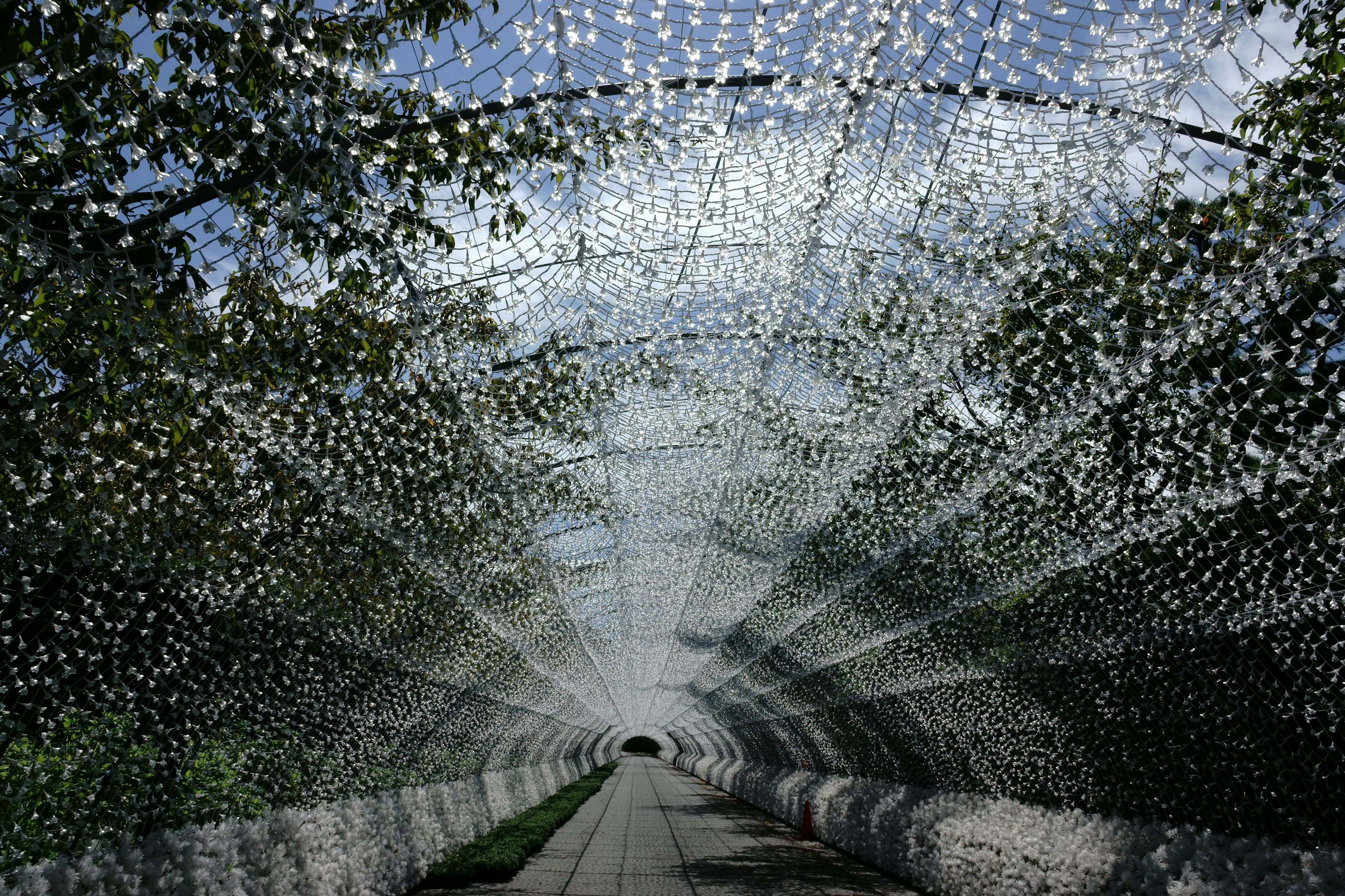 シーズンになると電装されて光り輝く「なばなの里」の光のトンネルです。 これはこれで美しい。