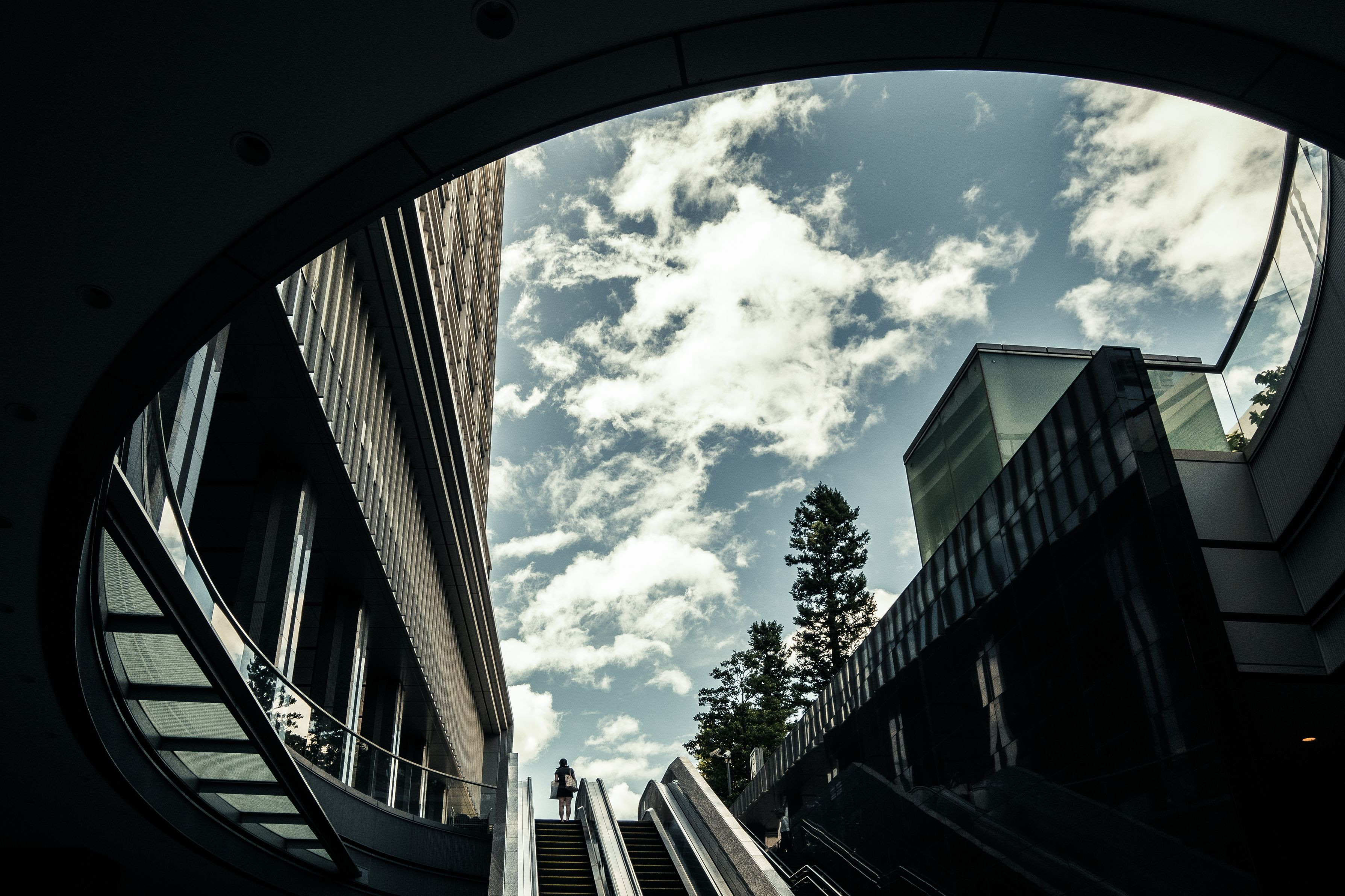 女性がちょうどエスカレーターを登りきる時に、シャッターを切ることができました。