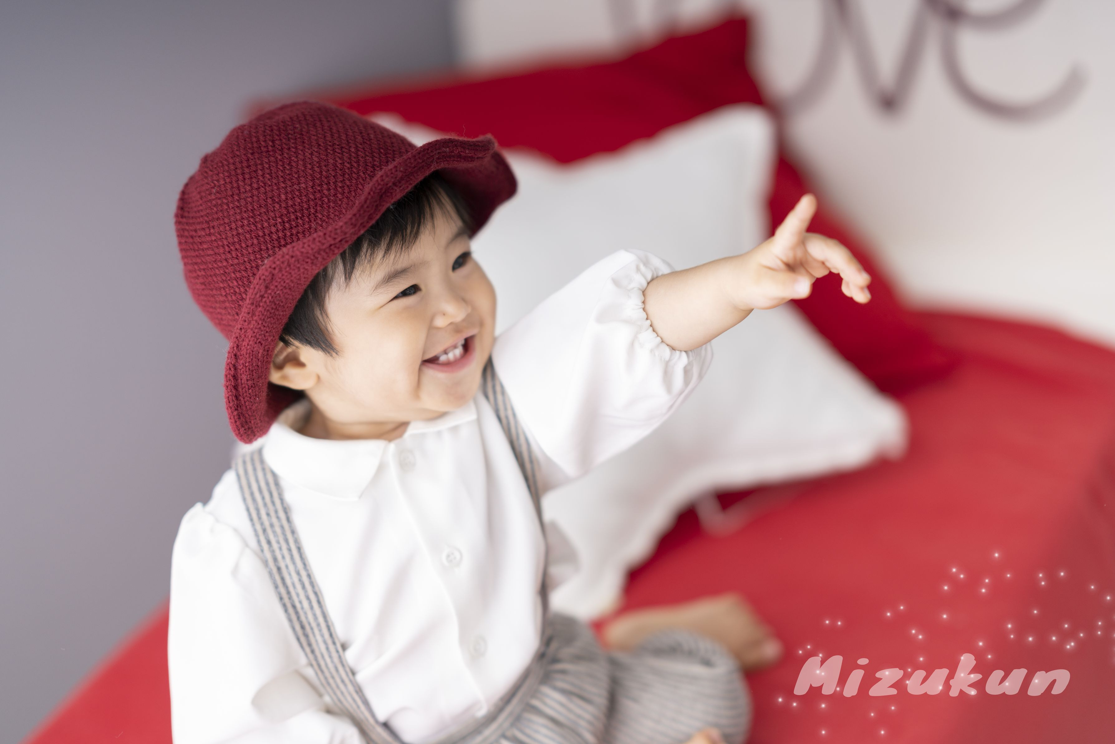 今回はスタジオで撮影して来ました。 今はパパ大好きな周期のため、カメラを構えてもパパに突進してくるので撮影は難航・・・パパが諦めかけたその時、影から応援してくれていたママが登場! そして一言、、、 「ぱっぱーーーーっ!!!」