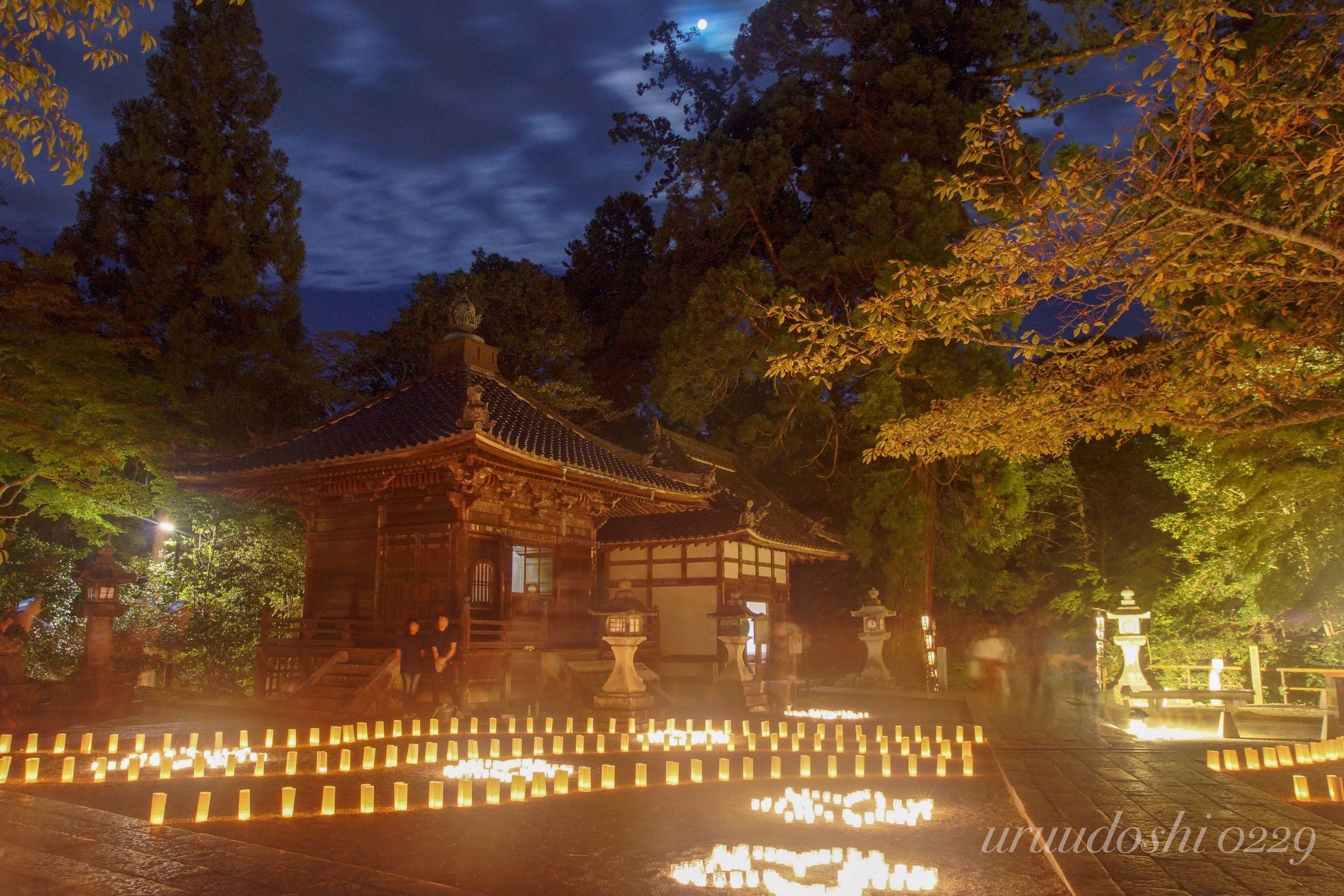 滋賀県大津市 石山寺秋月祭(2018/09/23〜24)にて。 とても人が多く途切れなかったので、低感度長秒撮影で人影が少しでも消えるようにしてみました。