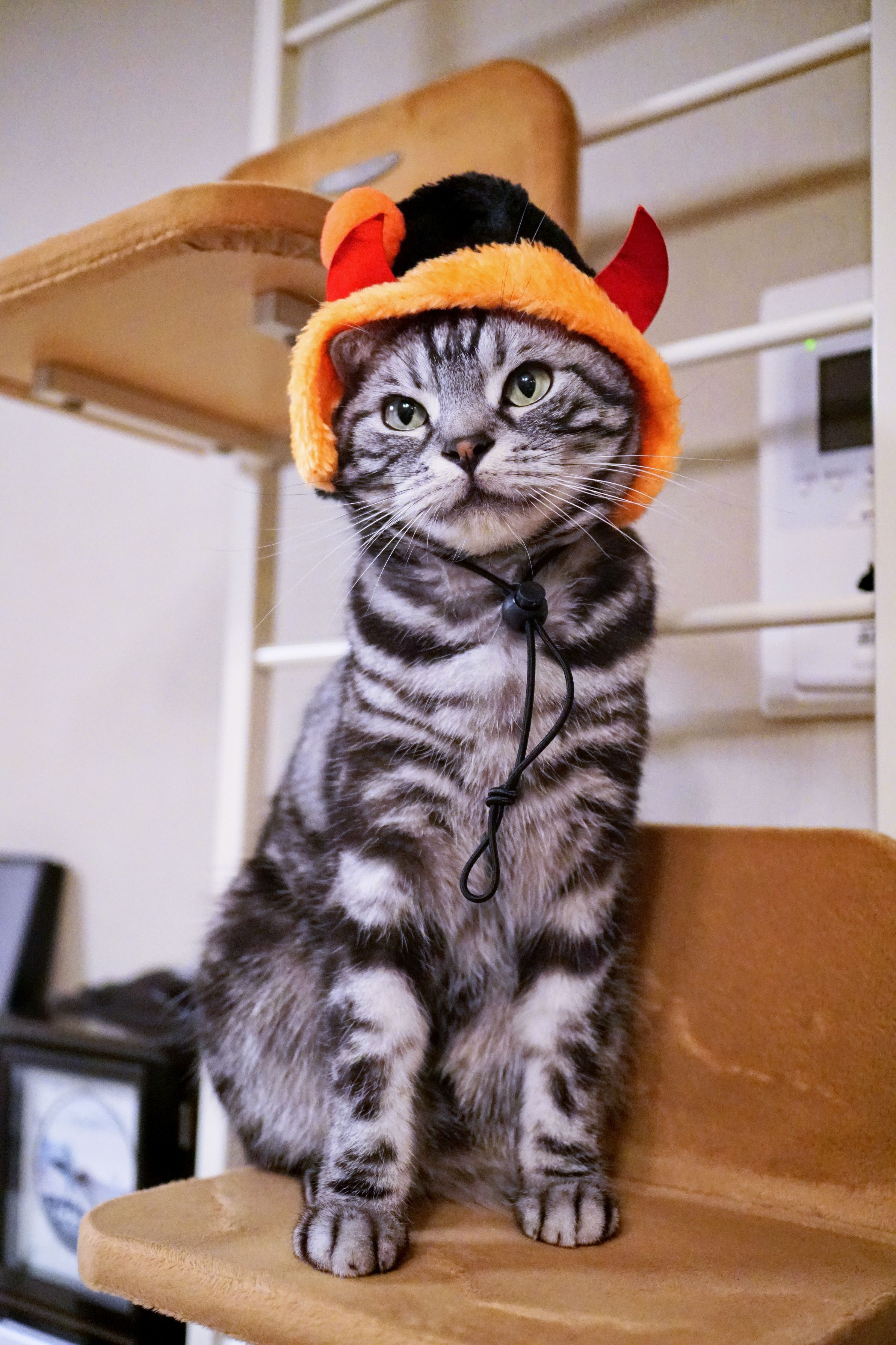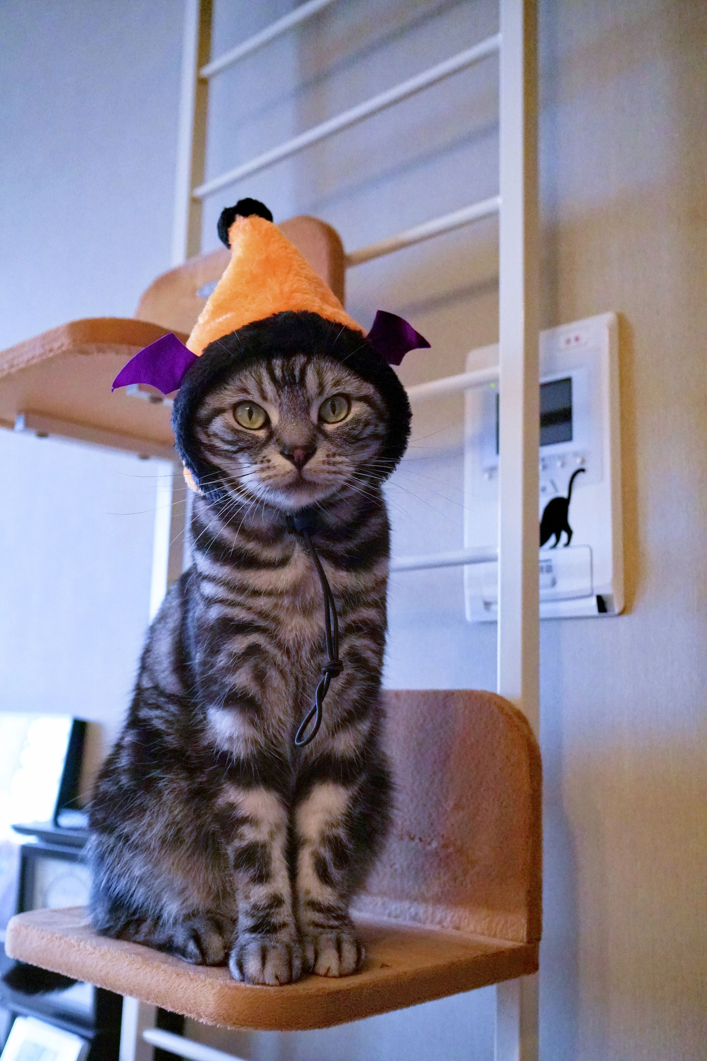 100円均一で出会ってしまったハロウィーンな帽子。 許せ、こてつ!
