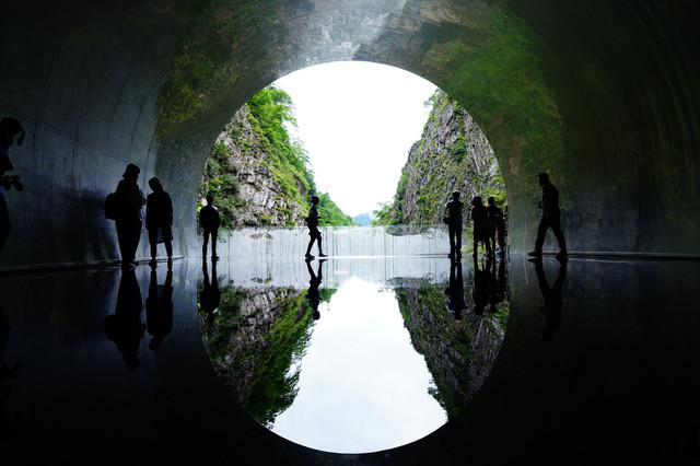 佐渡島から本州に戻り新潟トリエンナーレをまわりました。 清津峡渓谷トンネル 次は朝一でいって人が写らない形でとりたいなって思いました。