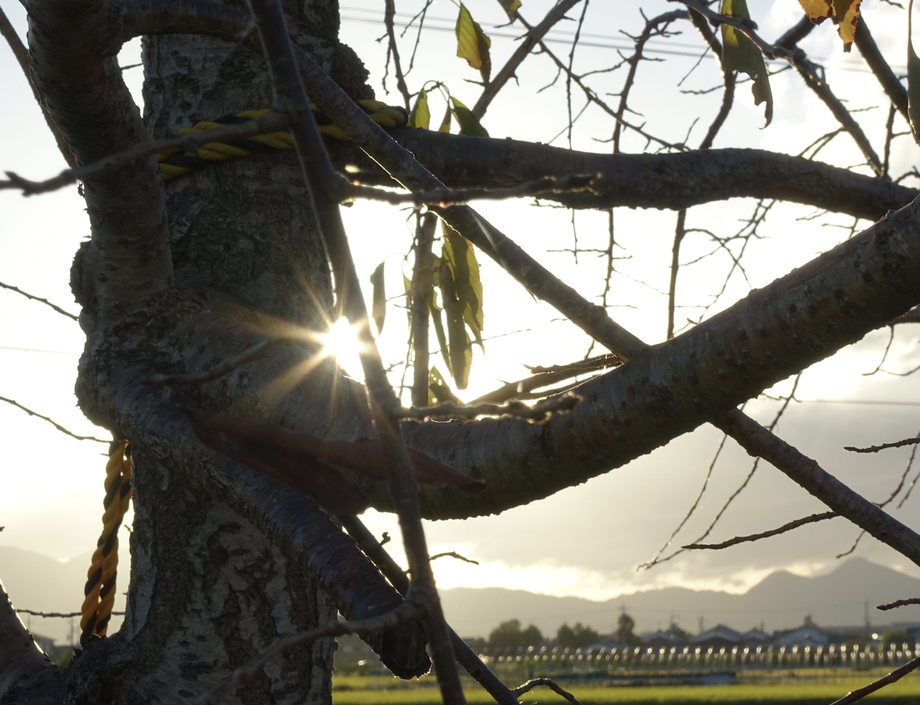 強い西陽は 木の影の力を借りてなんとか見えます。