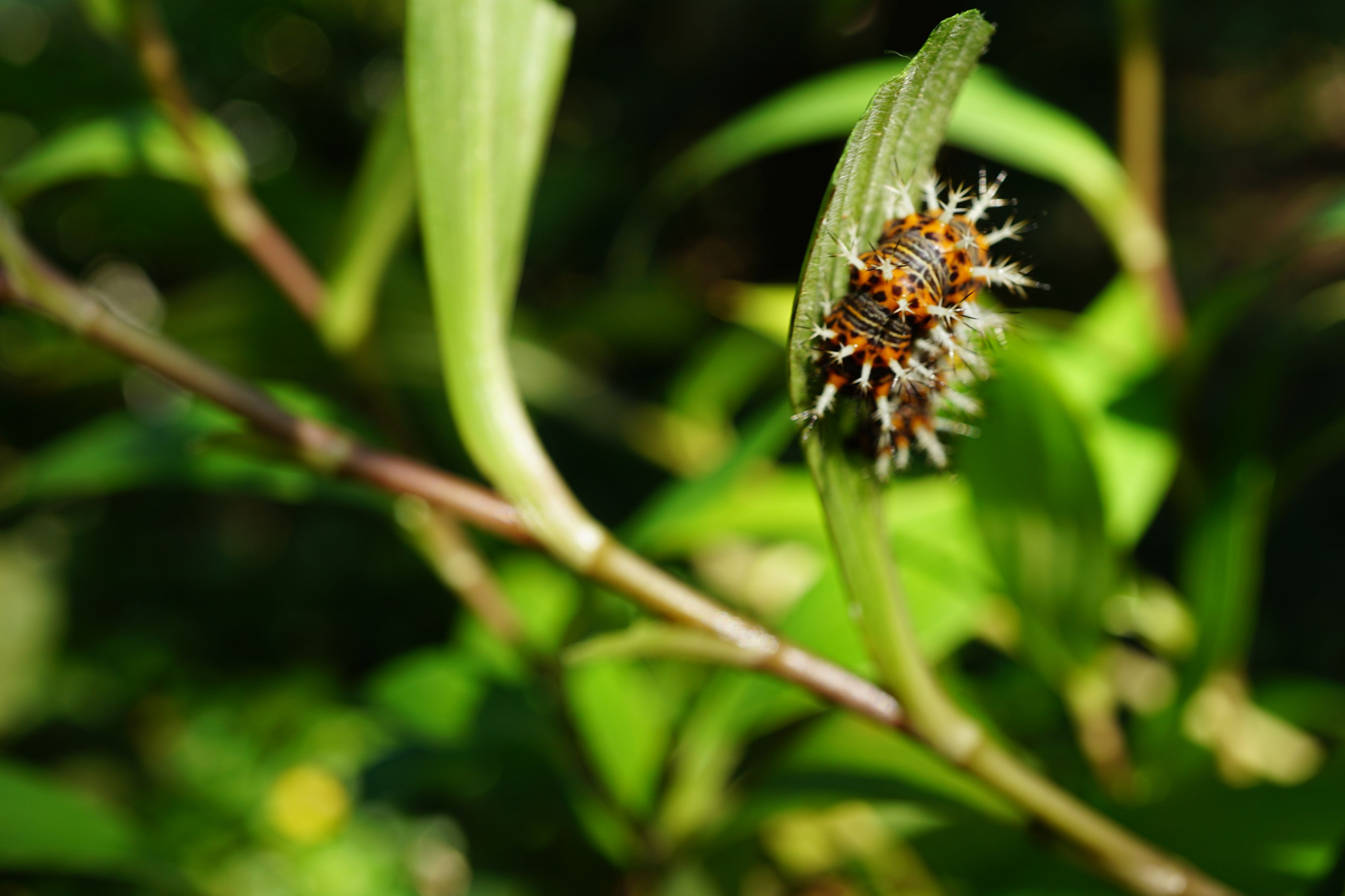 ルリタテハの幼虫と知り 今年は殺虫剤を使用しませんでした おかげでホトトギスの葉はボロボロです