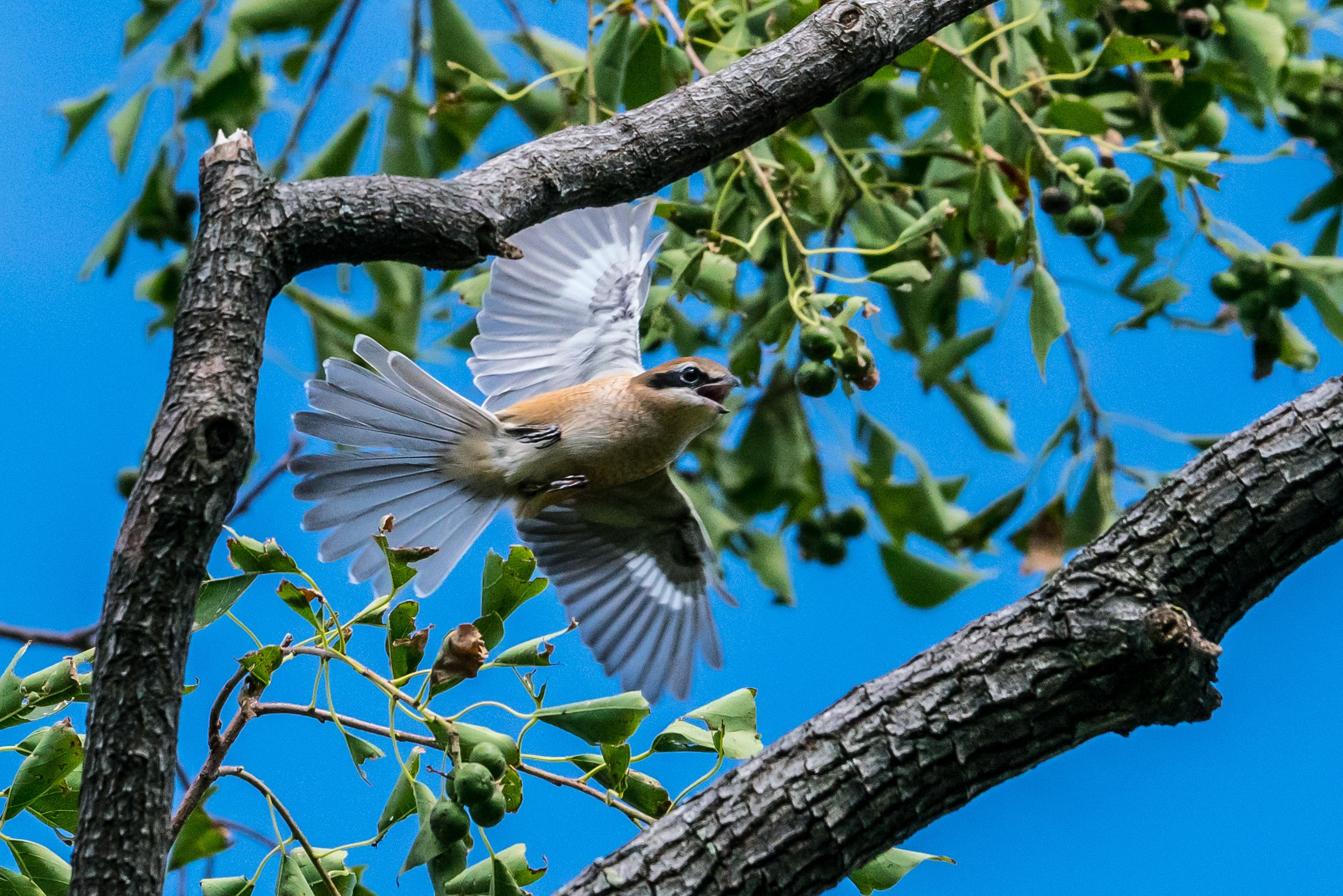 #モズ# 羽根が幹で被っちゃったけど綺麗に撮れてたので