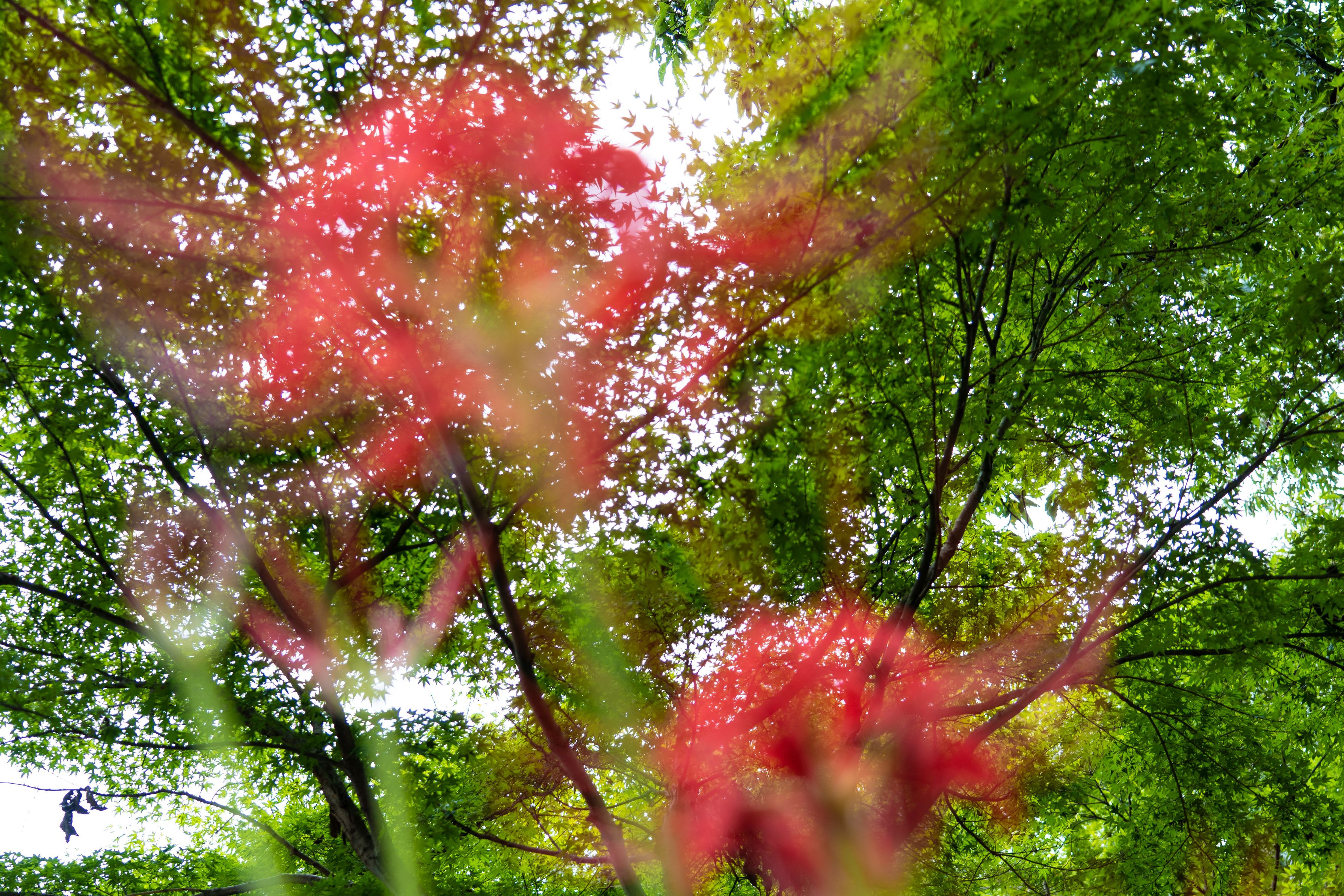 彼岸花(曼珠沙華)の見ごろは、まだ木々の葉っぱが青い残暑の季節。炎のような真っ赤な花は、紅葉に邪魔されずに妖しい美しさを振りまいている。。。ということに写真を撮って初めて気付いた。