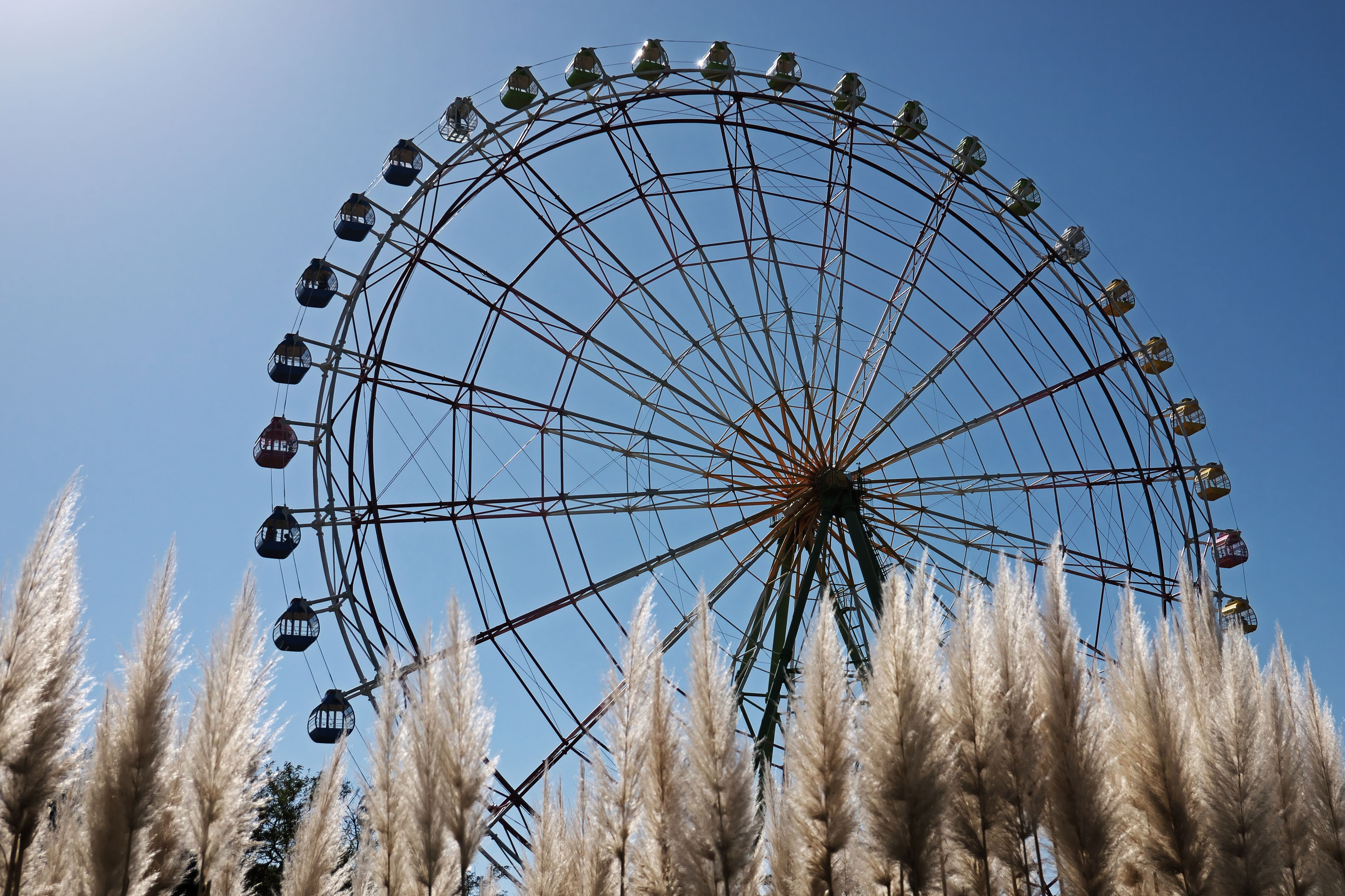 ひたち海浜公園で。 観覧車はプレジャーガーデンという遊園地エリアにありますが、裏側は大草原になっていて、こっち側から見た観覧車は風情があると思うんです。