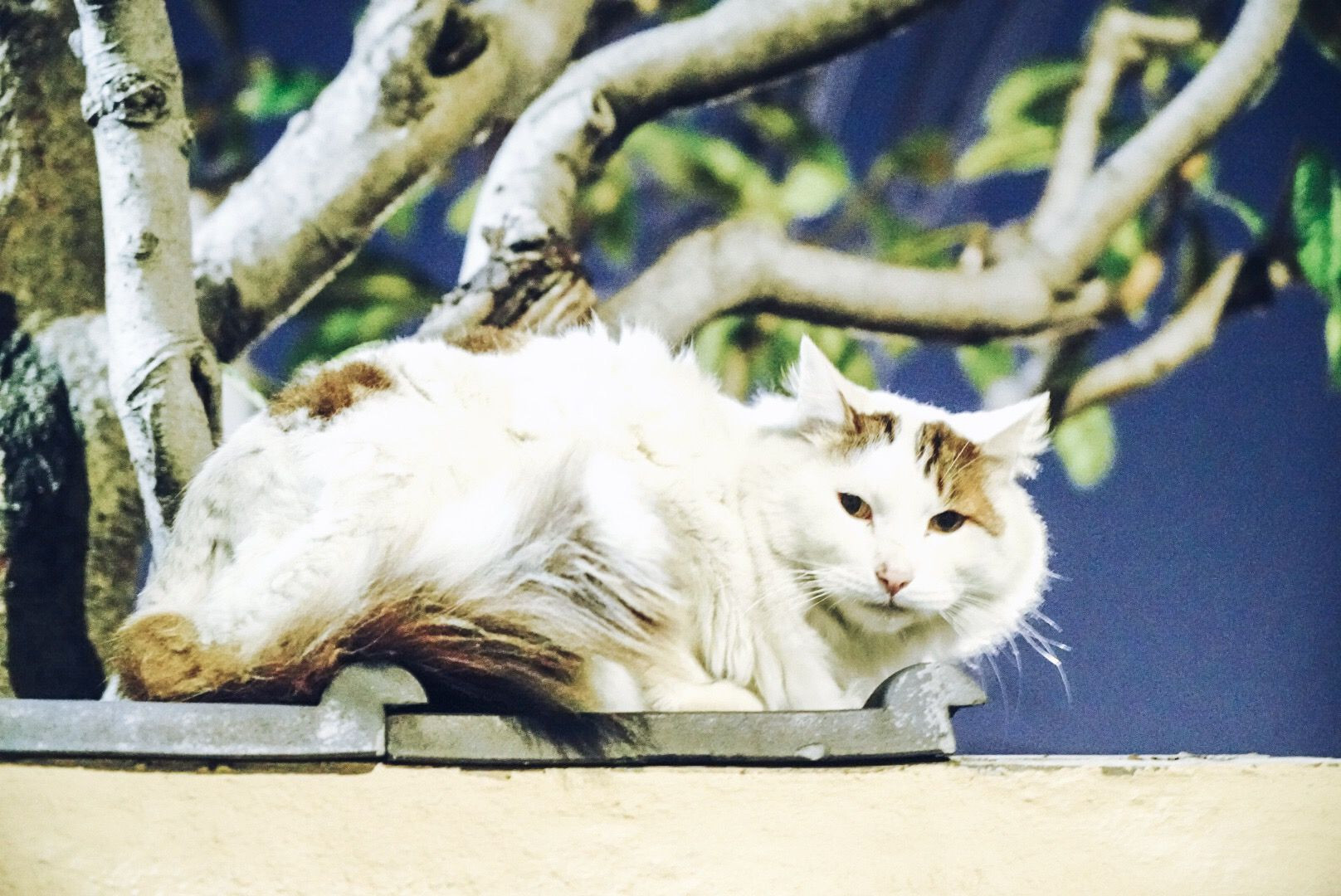 夜、塀の上に野良猫がいました。 この辺りでは、野良猫を塀の上や屋根の上でよく見かけますが、たいていこの猫です。どうも高いところが好きな猫のようです。