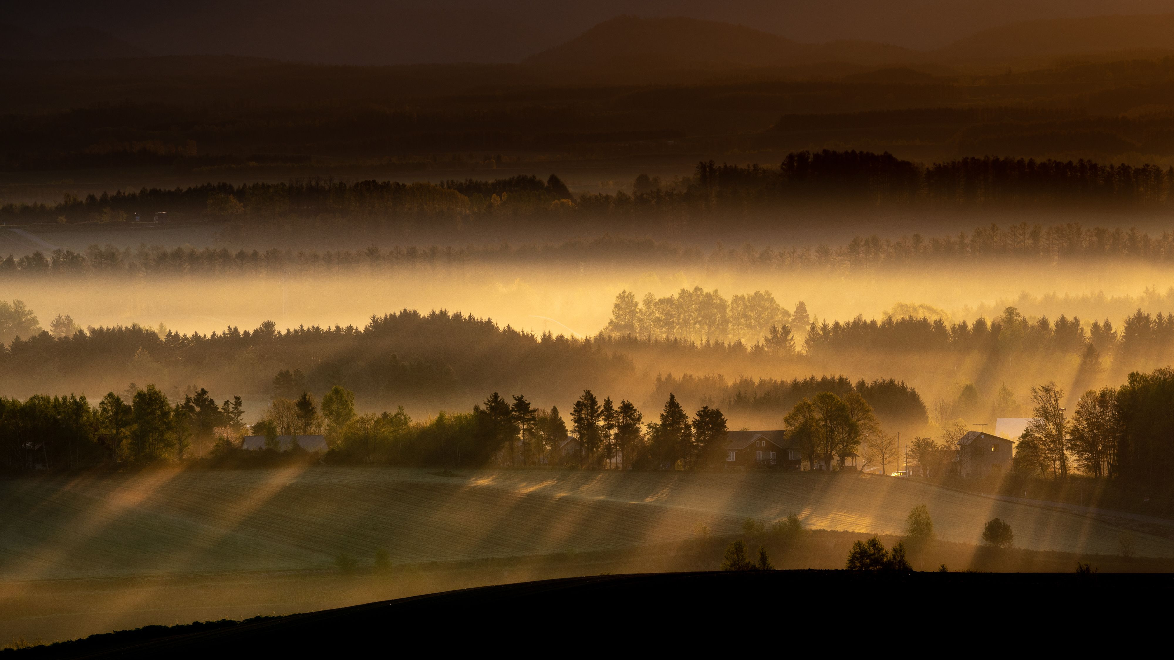 朝霧の丘に光射しました。