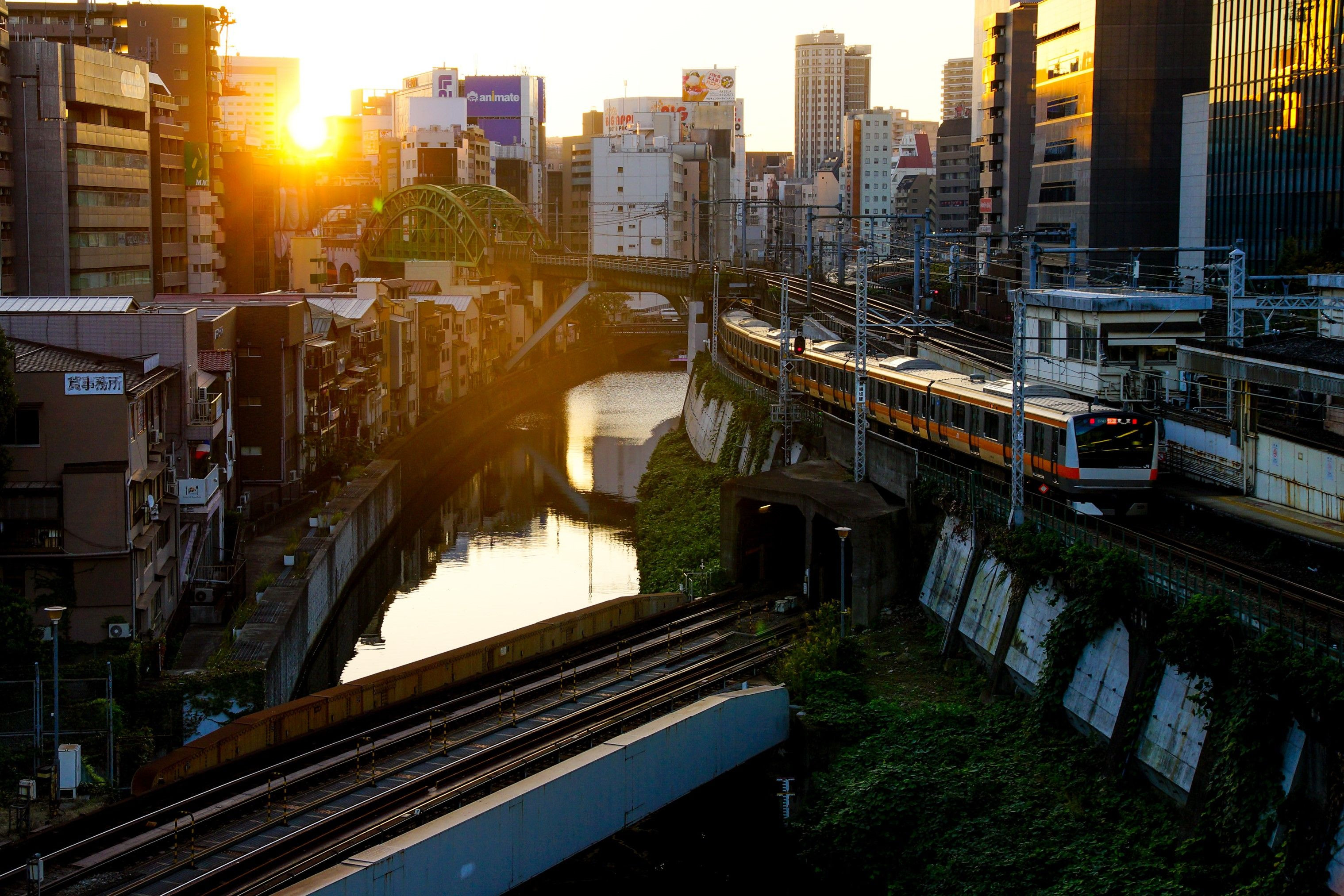 東京都心を流れる神田川の日の出
