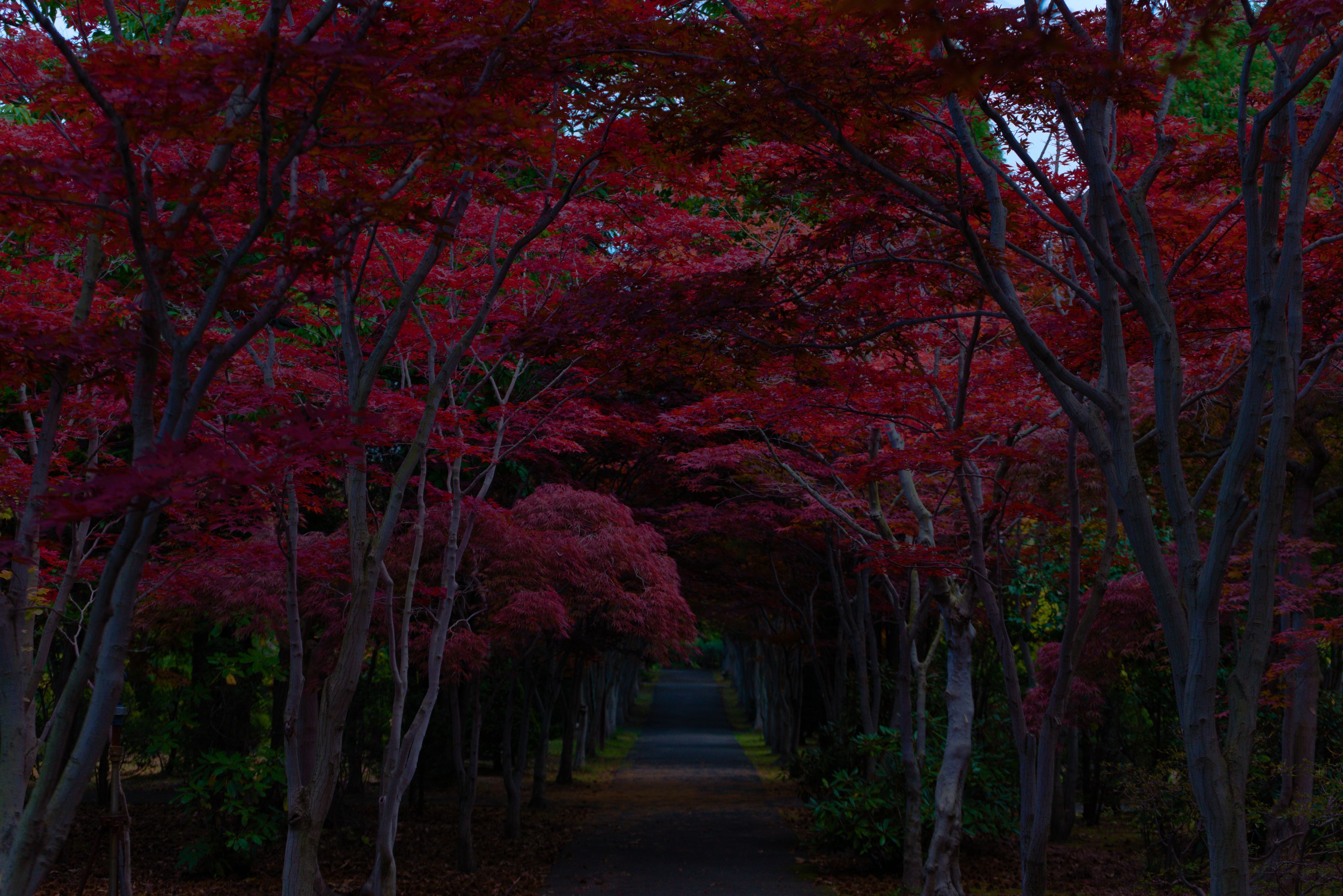 紅葉真っ盛りのトンネルを露出を抑えることによって、 冬へのトンネルらしく表現しました。