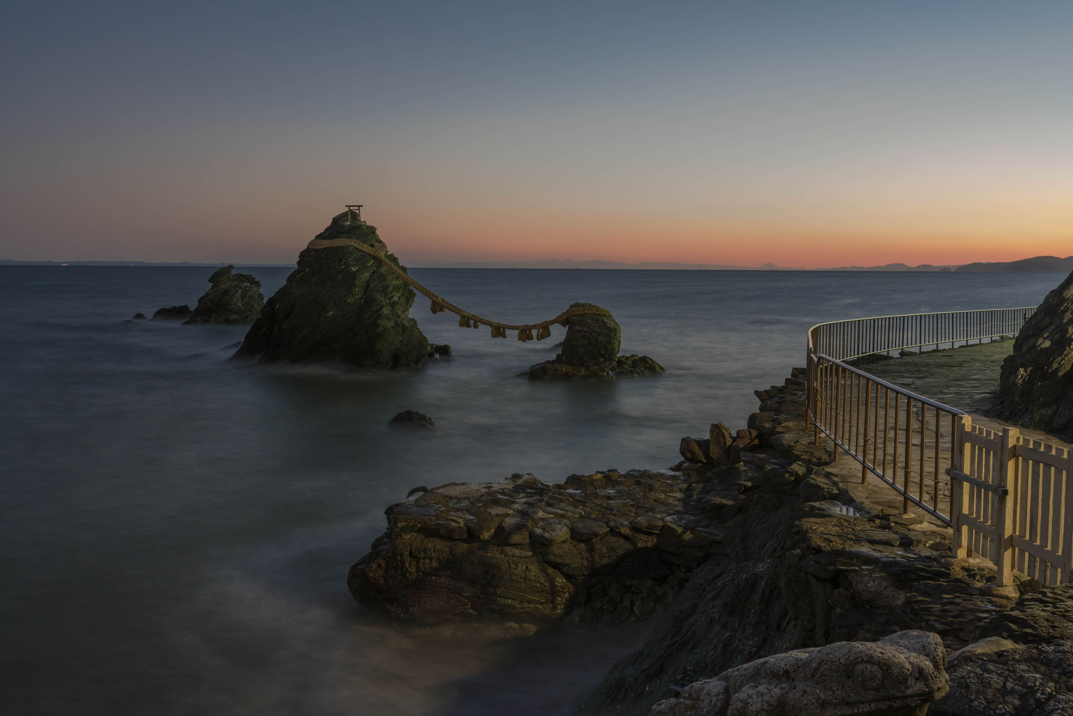 先日、家族旅行で伊勢に行った時に夫婦岩を撮りに行って来た時の写真です。 遠くに富士山も見られてラッキーでした。