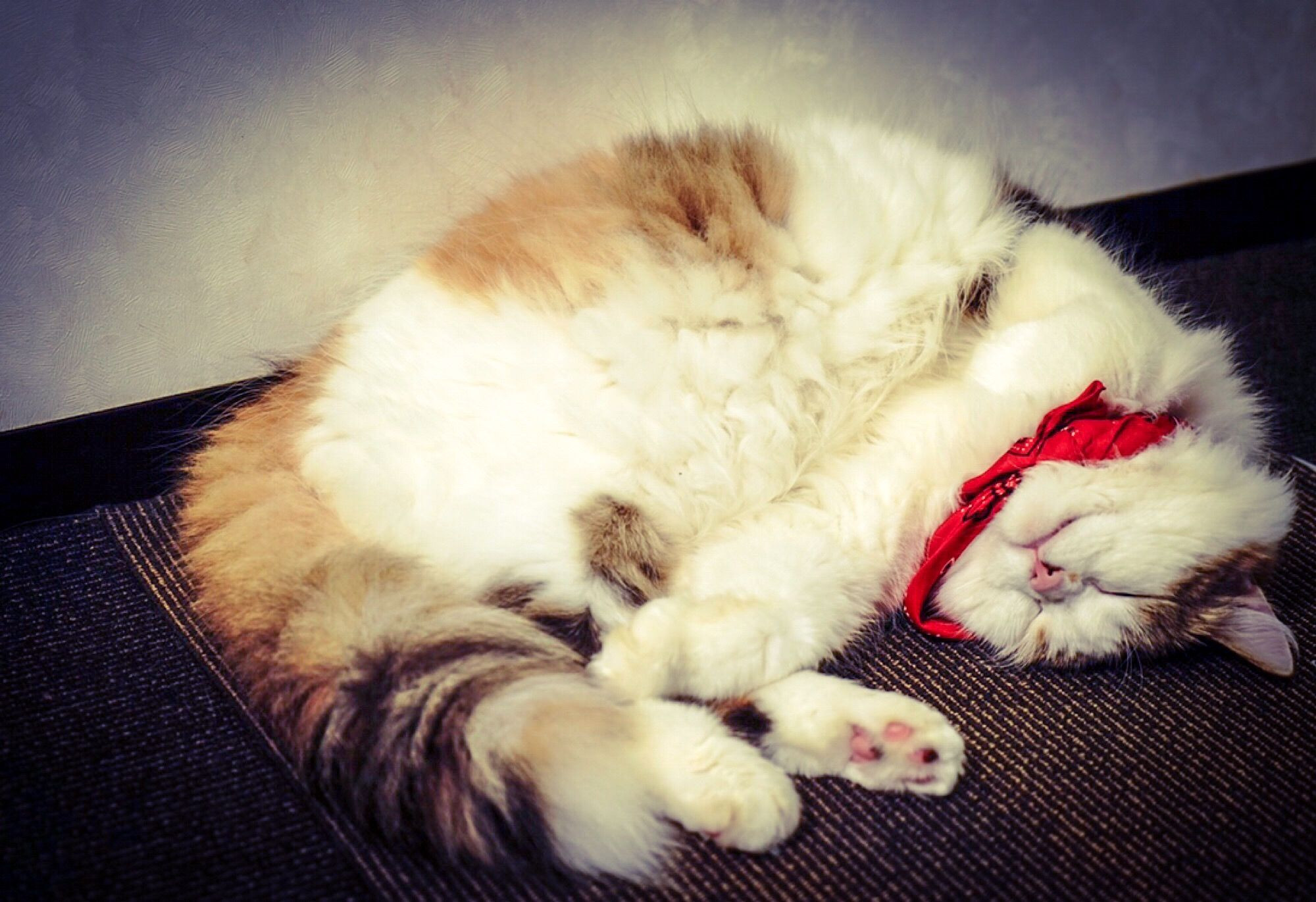久しぶりに猫カフェに行き、寝る猫を眺めて帰りました。 長居しすぎたのか、帰宅時には獣臭くなりました。 赤いスカーフの猫は食事制限中だそうで、体格から糖尿病かと思いましたが、尿路結石やら腎臓病の猫が多いようでした。 フィルターをかけました。