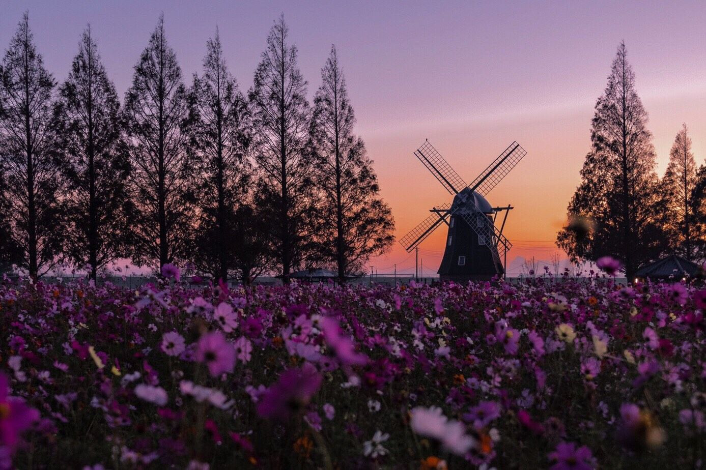 朝陽と秋桜