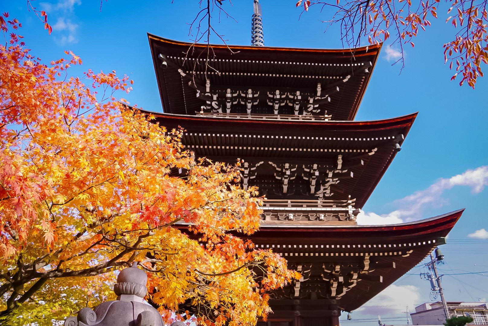 飛騨高山の飛騨国分寺 紅葉が塔に映えて綺麗でした