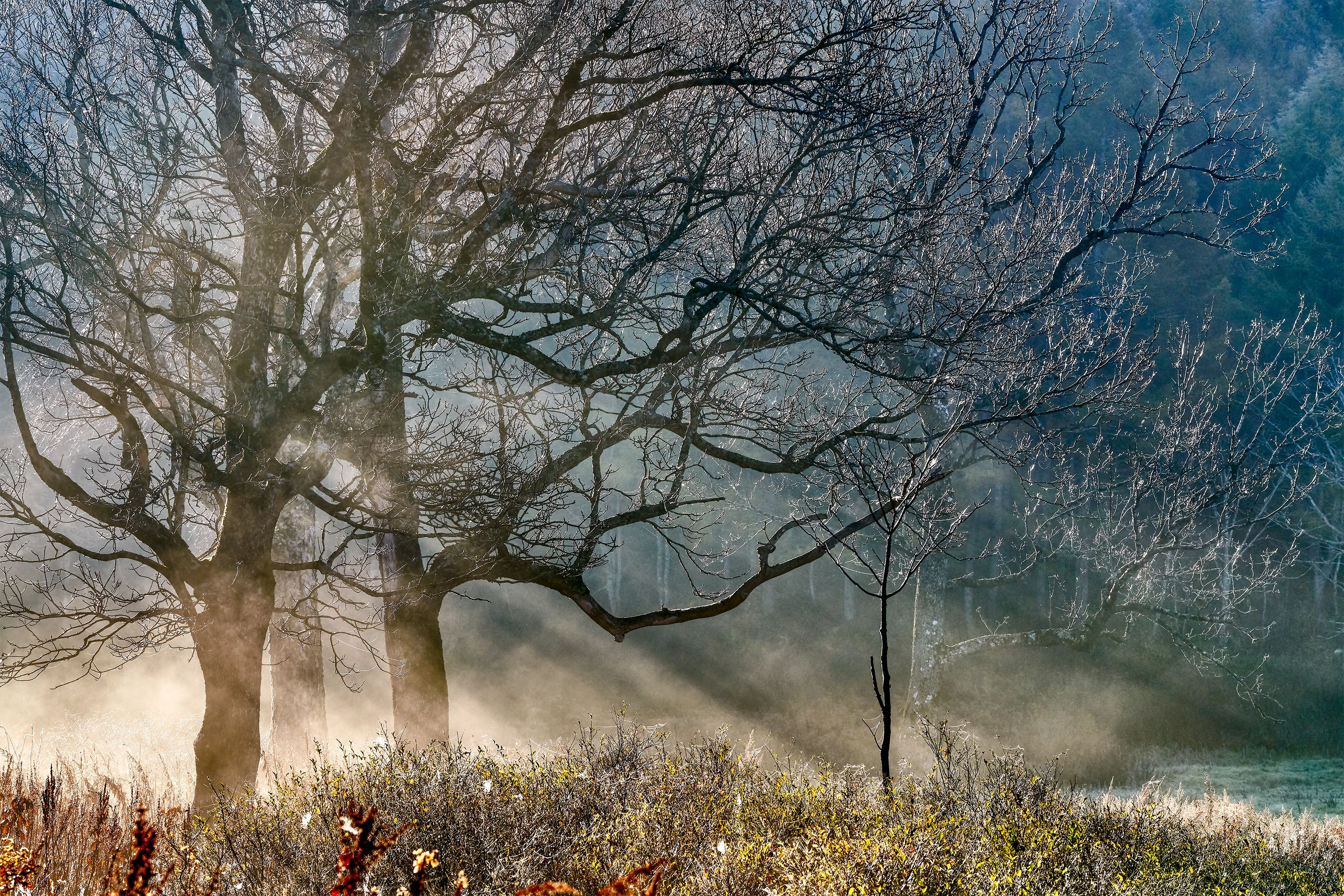 木島平村のカヤの平です。紅葉はほぼ終わり晩秋の風情でしたが朝霧が少し出てくれました。