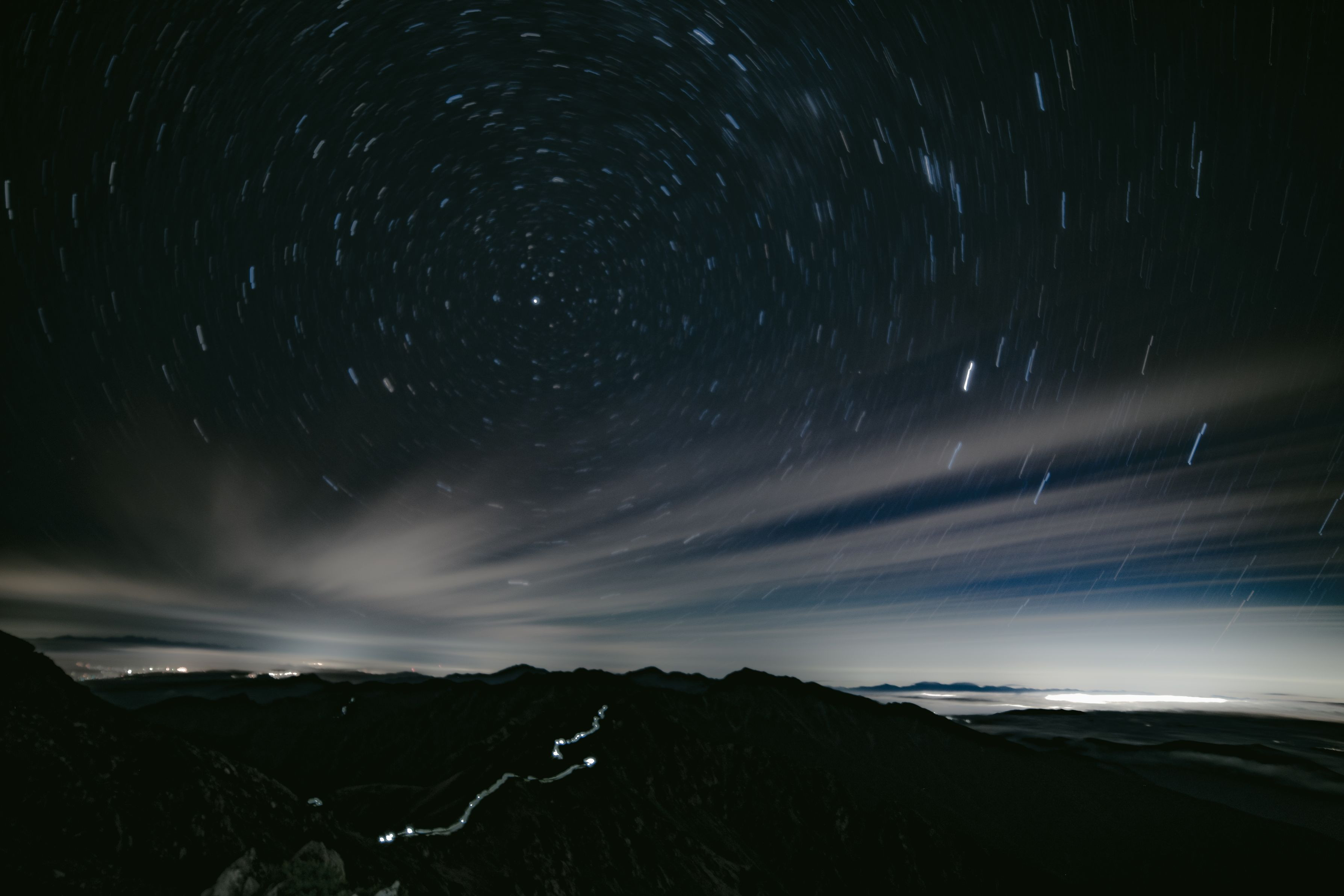 TJAR(日本海から太平洋までの山岳レース)小赤石岳~赤石岳に向かう選手を15分の露光で撮ってみました。