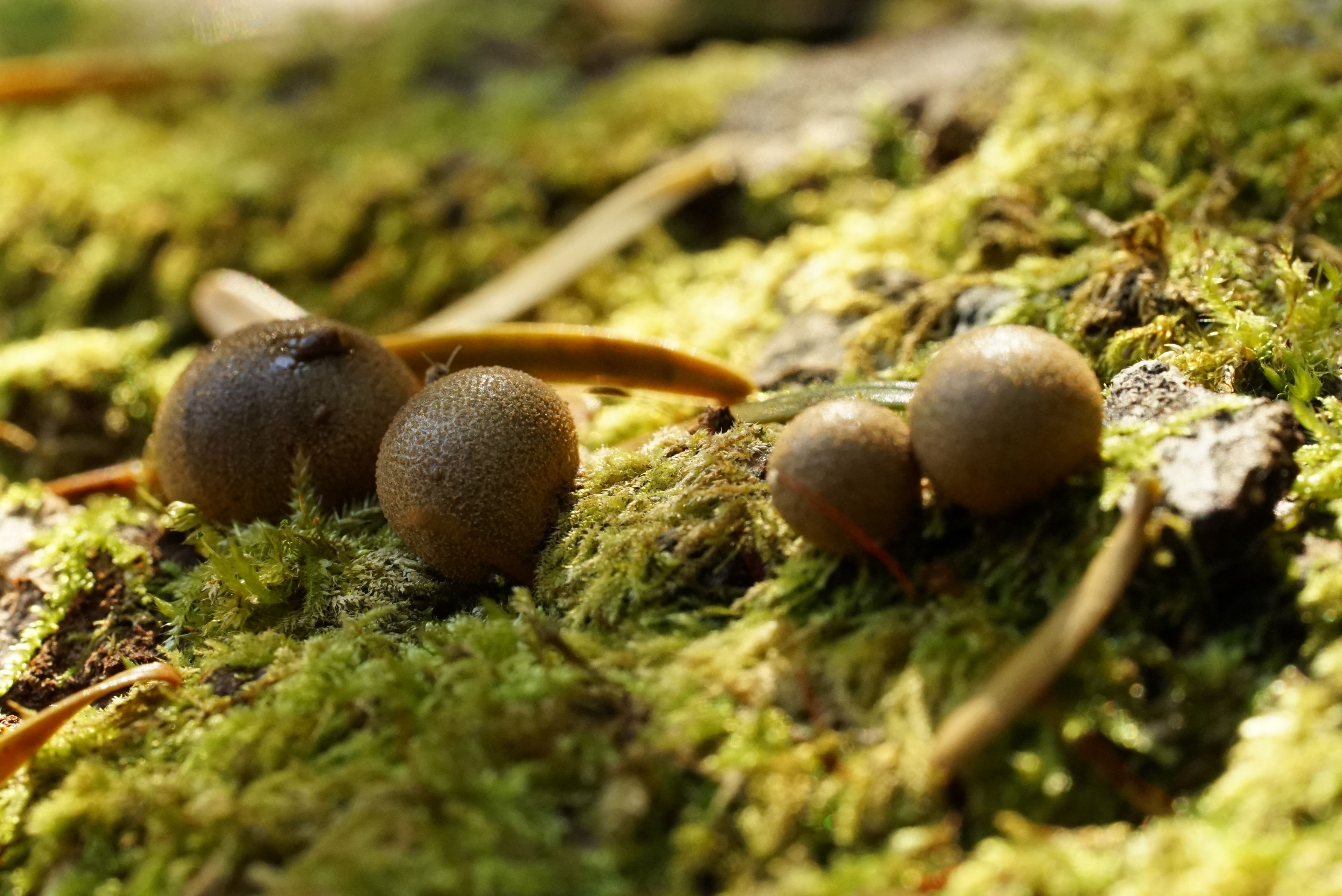 きのこかな? 違いました。 粘菌でした。 もう少し待てば虫にもピントが合いそうでしたが、我慢できずにシャッターを押してしまいました。