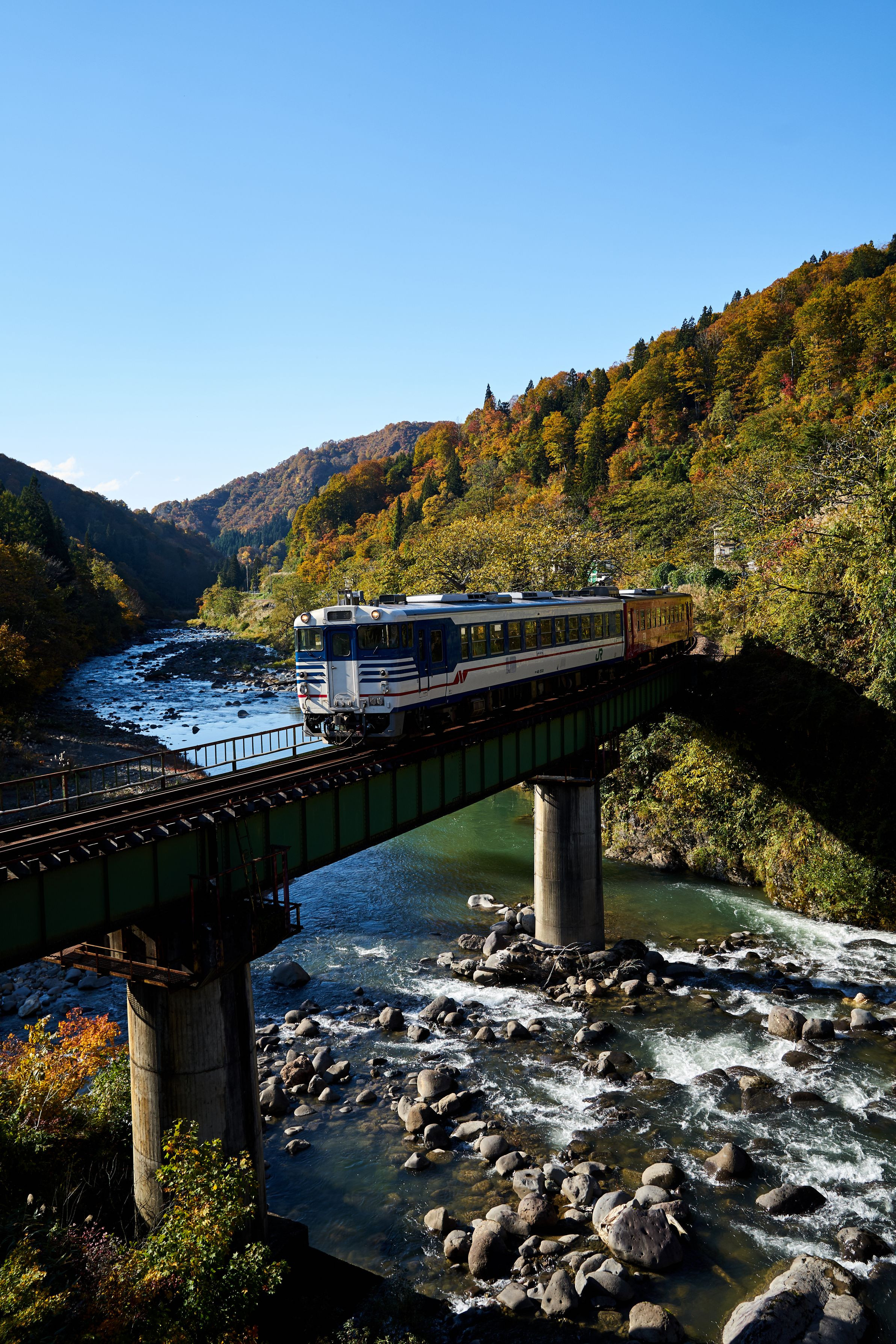 只見線 大白川ー只見 2018/11/3 晩秋 この日、沿線の浅草岳は雪化粧でした。 閉ざされる季節の前の 素敵な時間