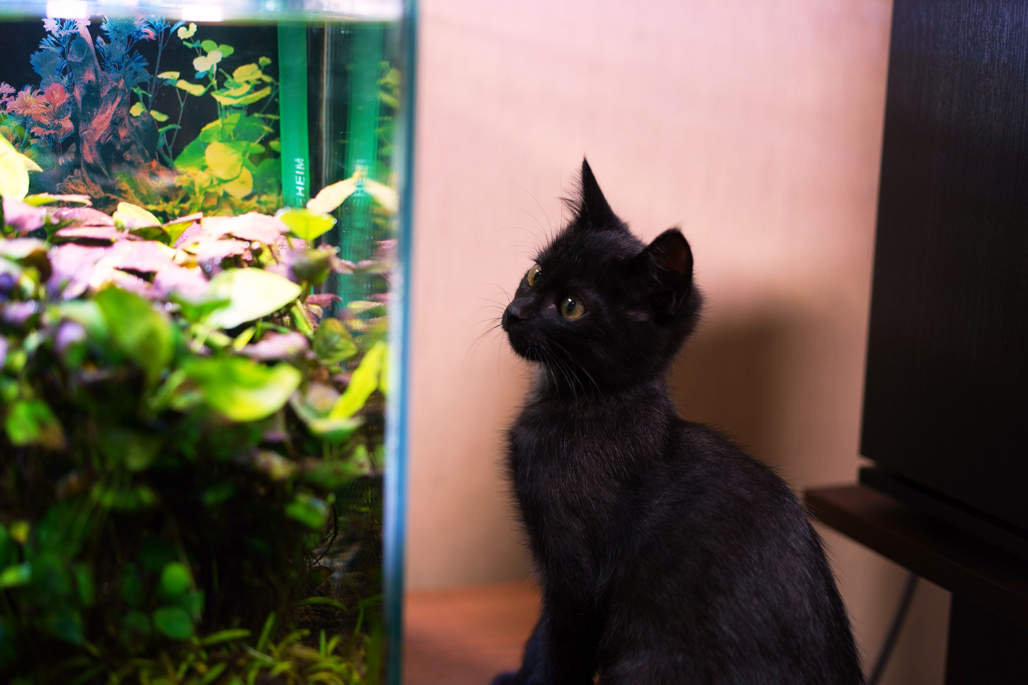 生後3カ月の黒猫がとうとう水槽に目をつけてしまいました