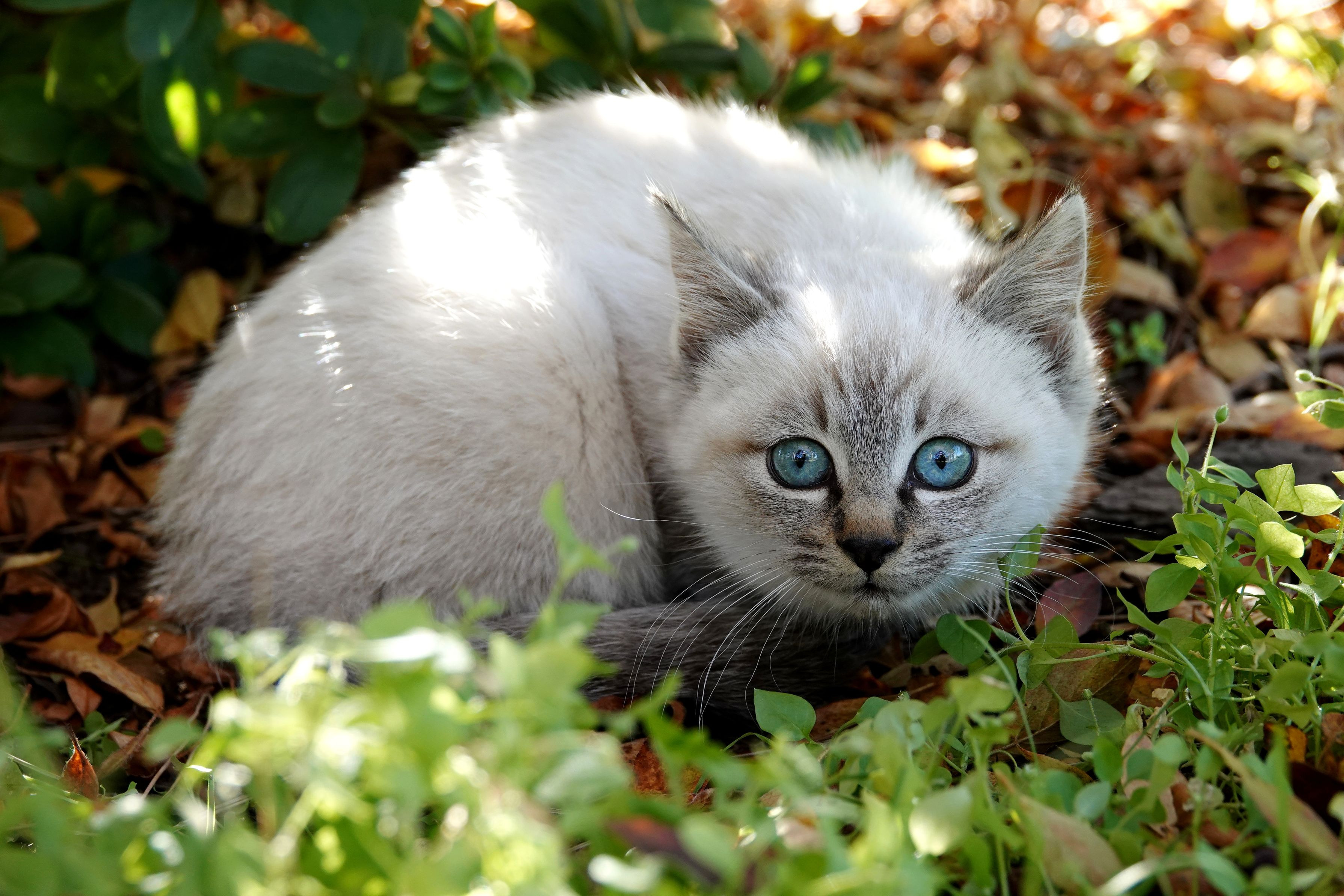 母親とはぐれた子猫は目を丸くして驚いた。