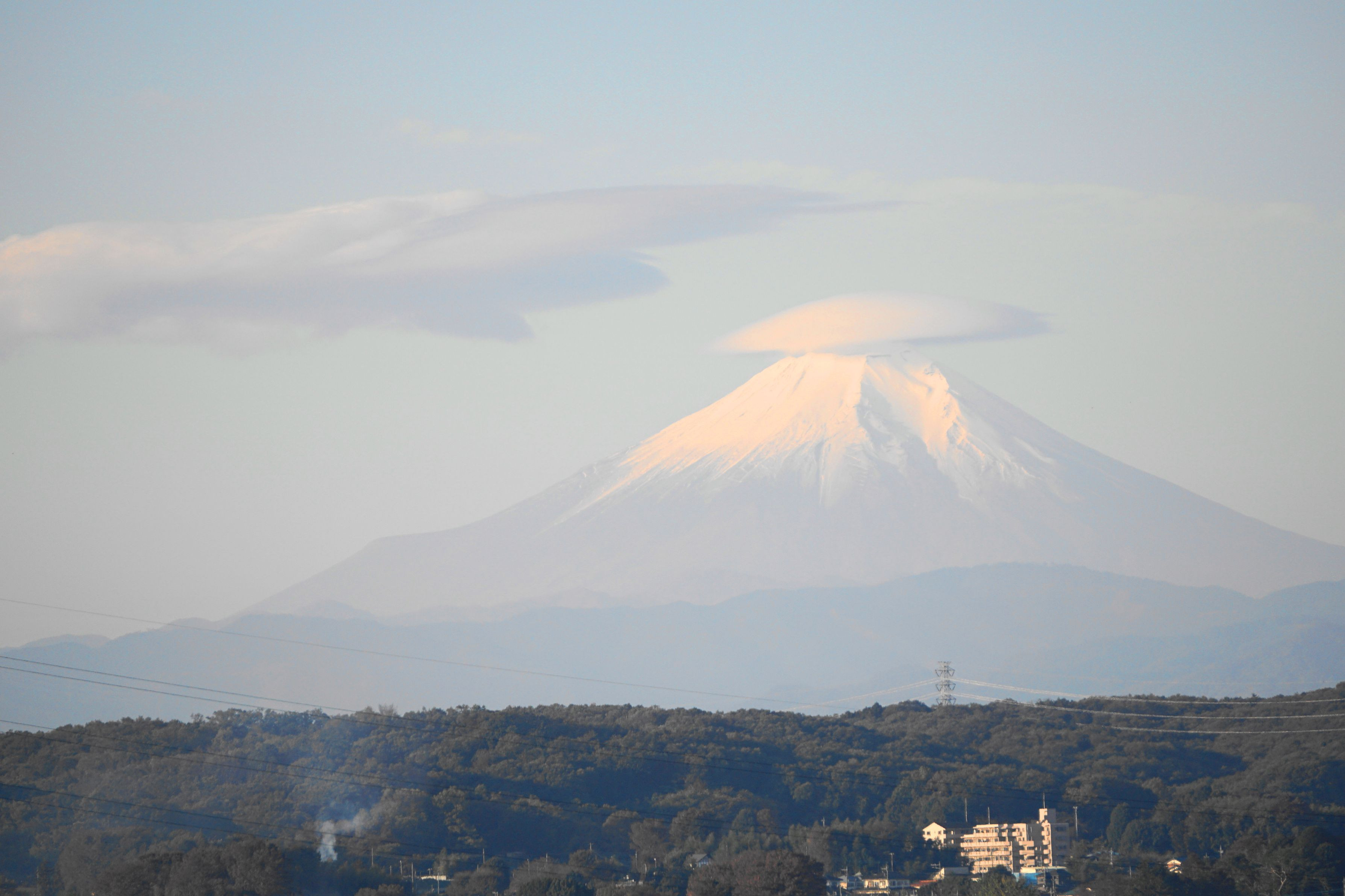 17日の早朝の富士山の姿です。 まるで傘を被ったようで可愛い富士山でした。 (自宅ベランダより)