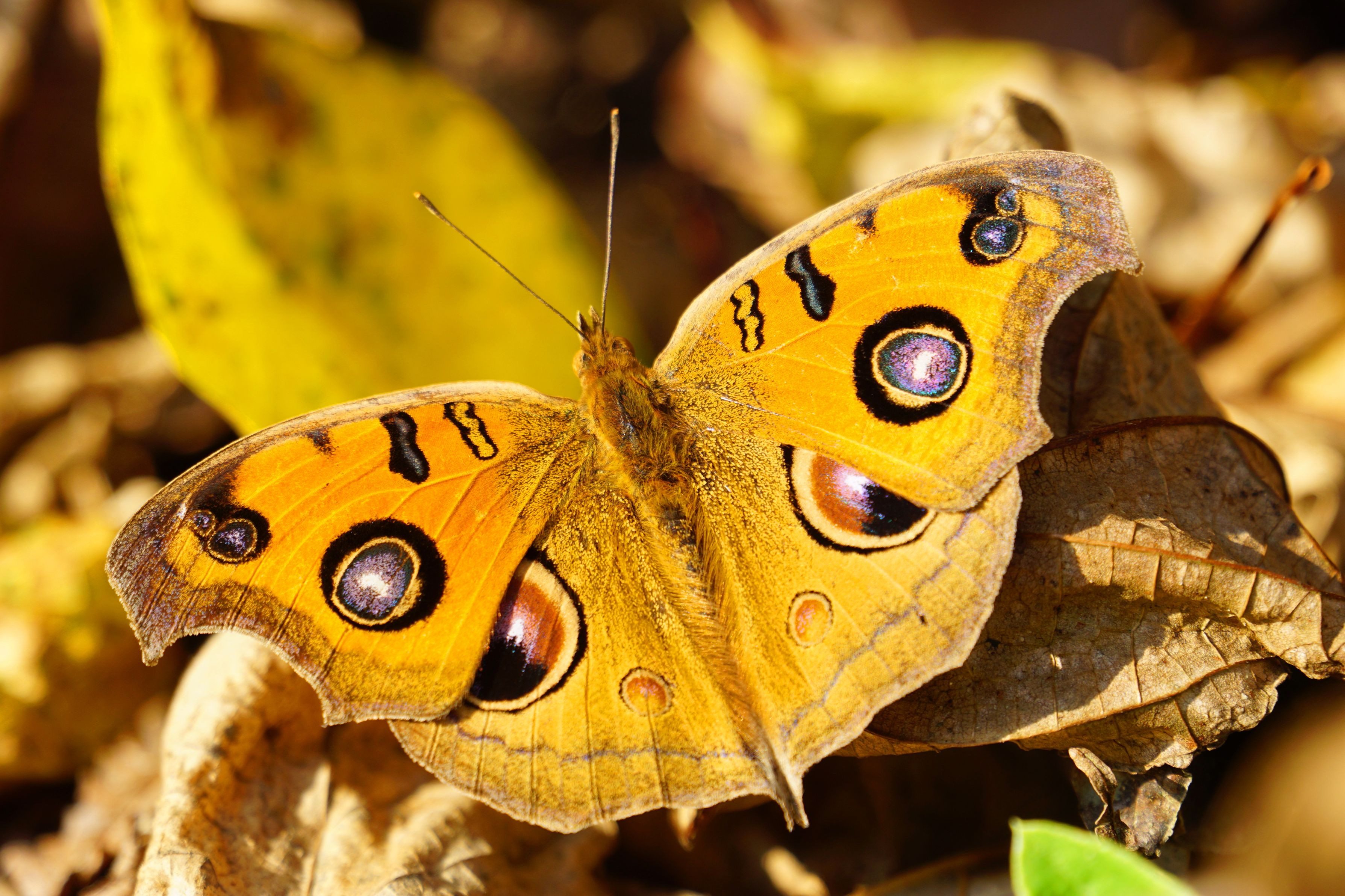 秋晴れの下 タテハモドキに出逢うことができました。 敏感な蝶ですが、全開の表翅も撮れて良かったです。 郷里の里山にて