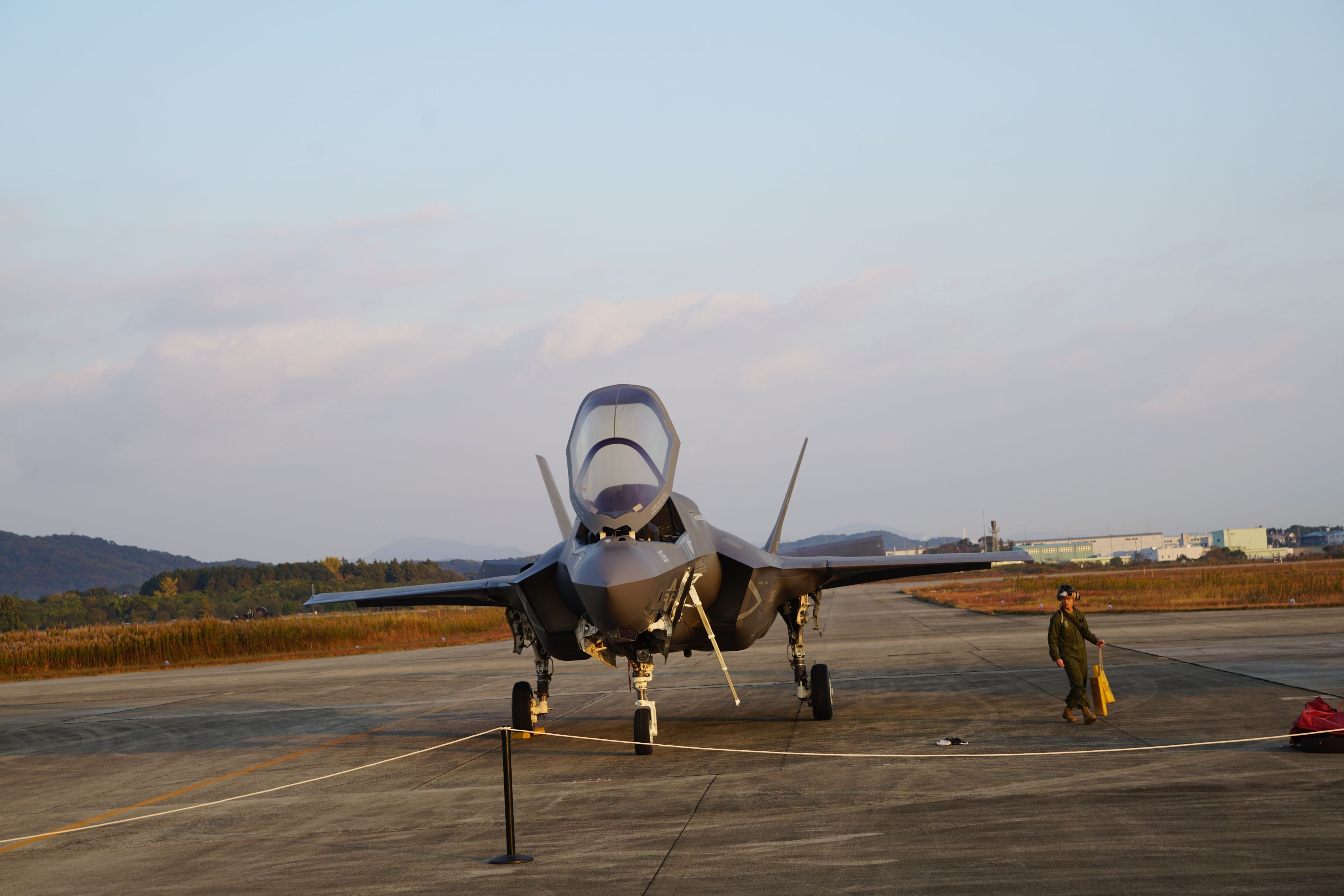 地上展示に35ライトニングⅡが来ました!(^^)! 日本のが来るのかと思っていたらアメリカ軍のBタイプだった。
