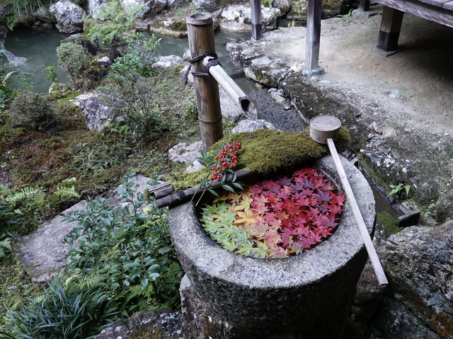 柳谷観音の手水舎です。 紅葉のグラデーションがGOOD。