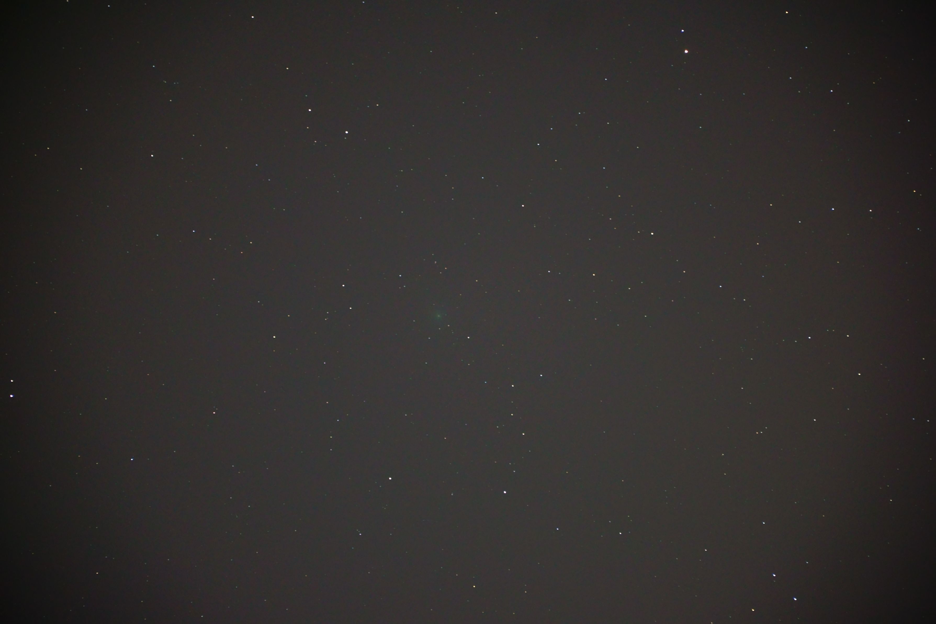 ウィルタネン彗星が比較的明るくなると某HPにあったので撮ってみました。 写真の中心付近の淡い緑色が彗星だと思います、たぶん、間違ってたらスミマセン