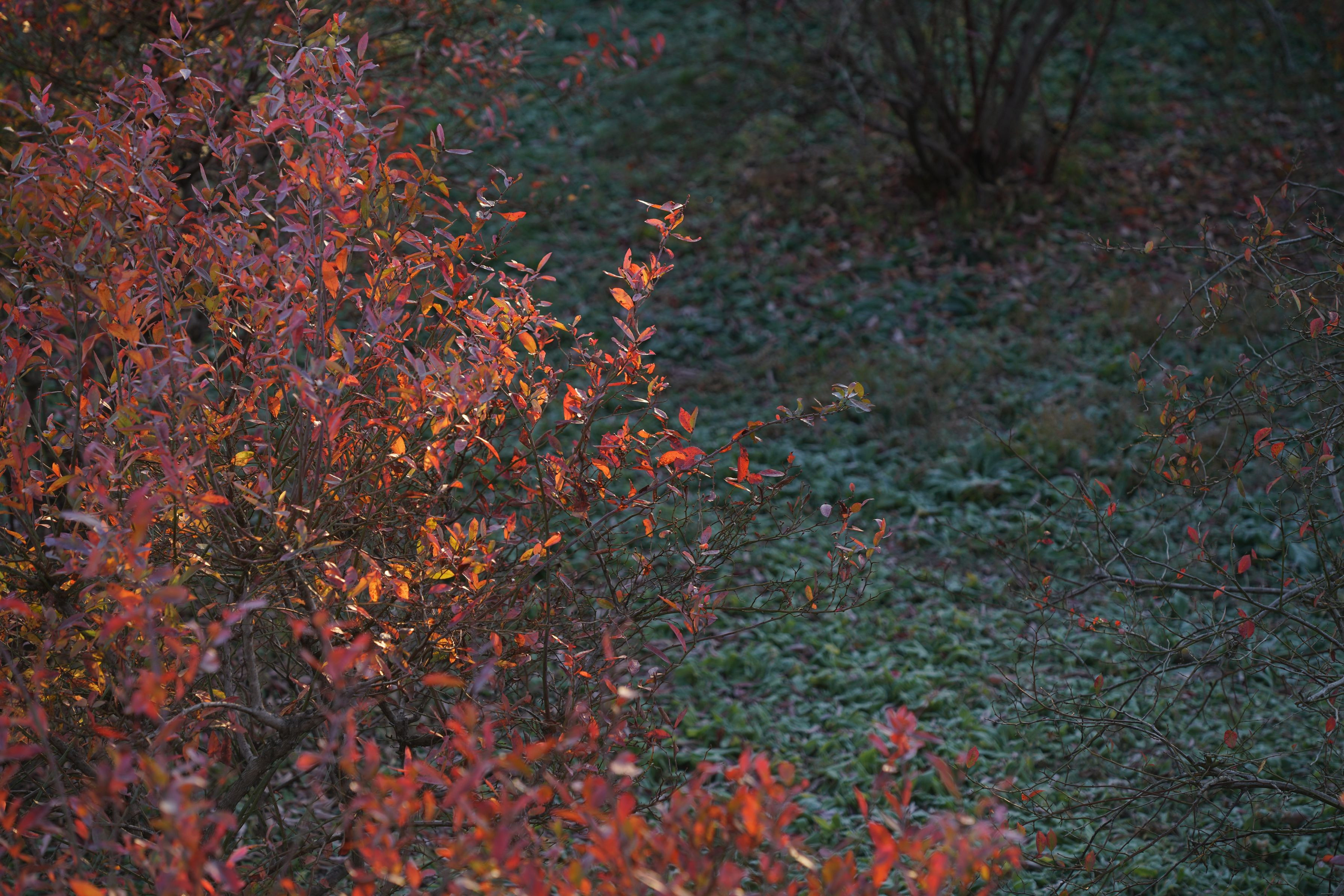 とにかく寒い朝にブルーベリーの赤色が光に映える