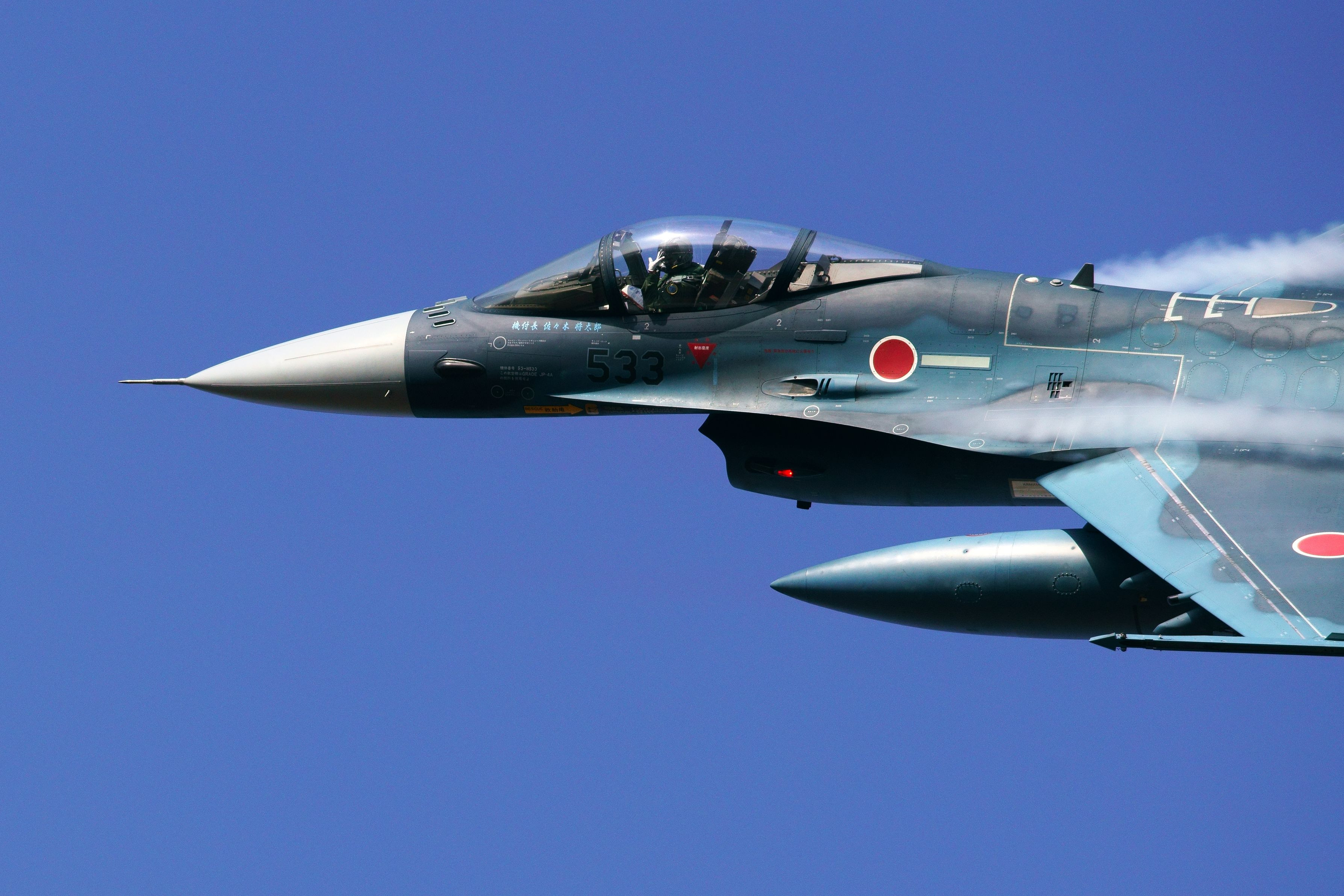 金曜の午後、第8飛行隊のBlack Pantherのスペマも到着しまったりと油断してると、突然、第6飛行隊の見敵必殺のスペマが飛来。豪快に機動飛行して築城にRTB。vaperの出るようなGのかかる激しい機動飛行中に、パイロットが余裕で手を振ってくれていた。驚いた。 トリミング