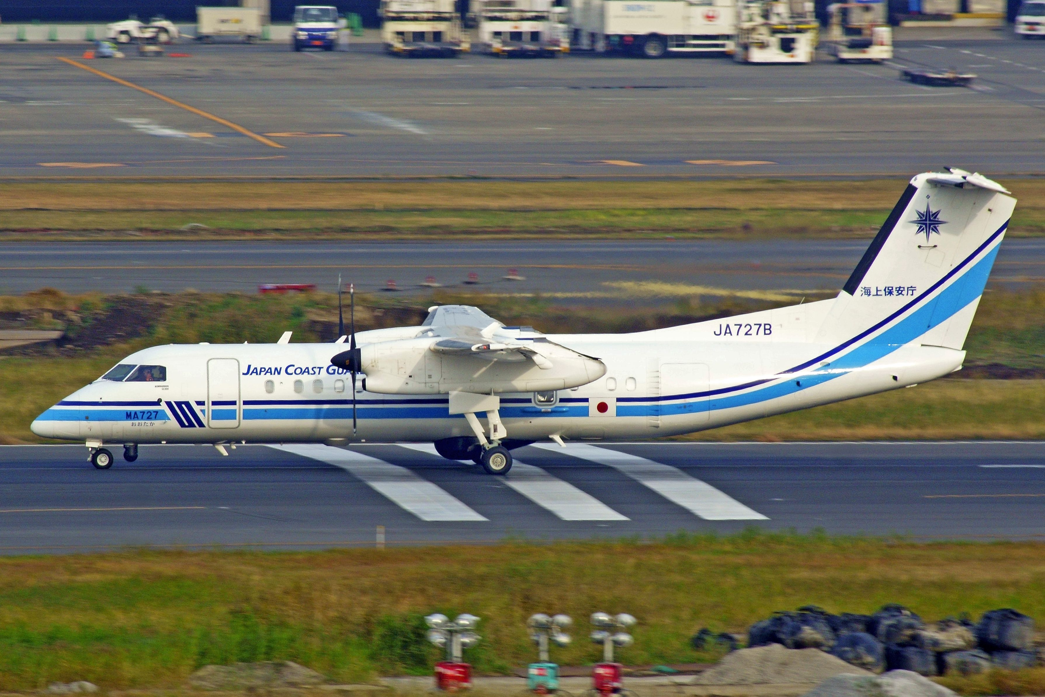 同型機が羽田基地にもいますが、この機体(JA727B)は仙台基地所属。元旅客機でMPA仕様に改造の上海保で運用中です。