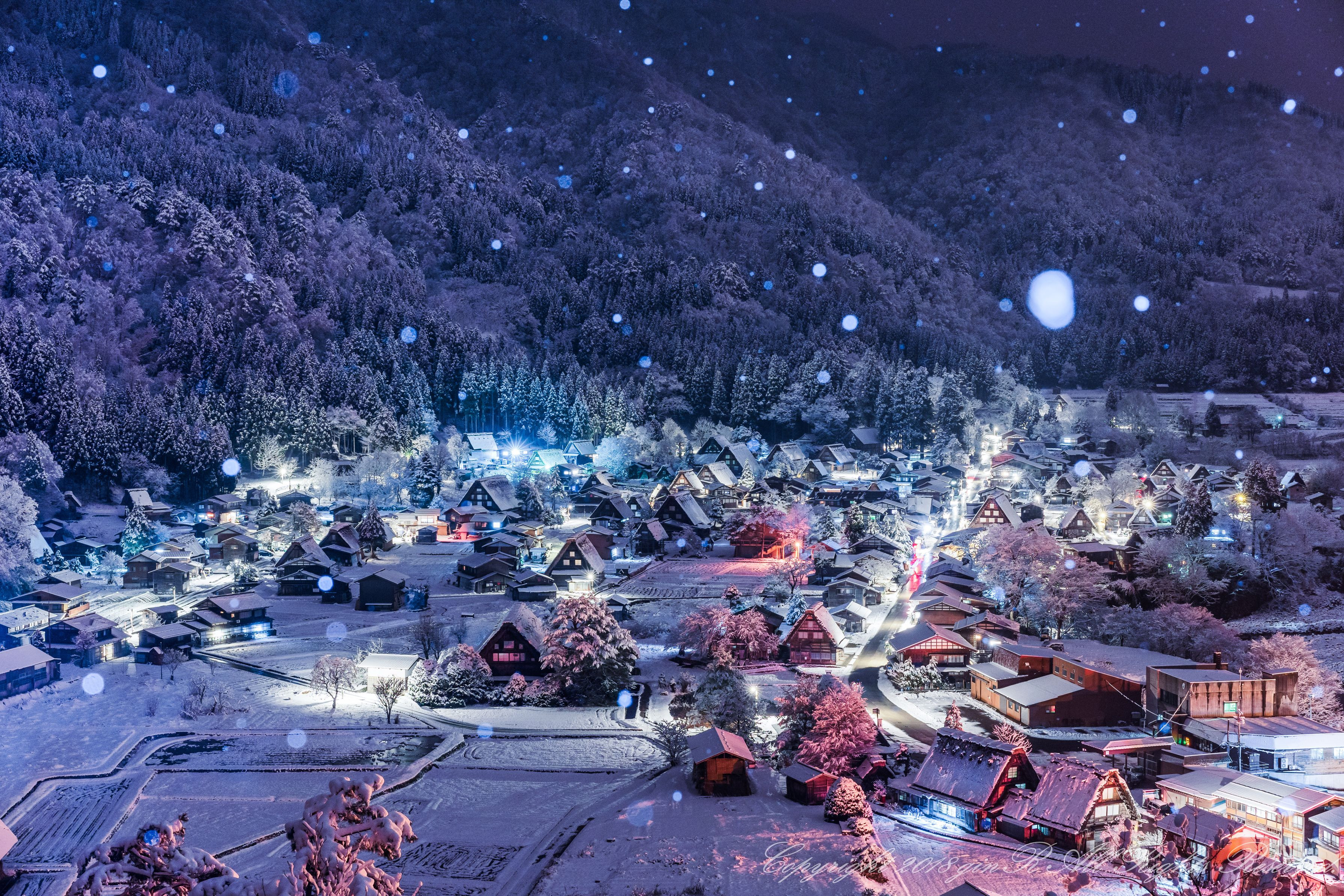 お久しぶりです。 生きています。 雪が降り始めたので、夜な夜な白川郷へ。 誰もいない、自由な時間を使って自由に撮っていました。 フラッシュは下方向から手動で3回ほど光らせています。