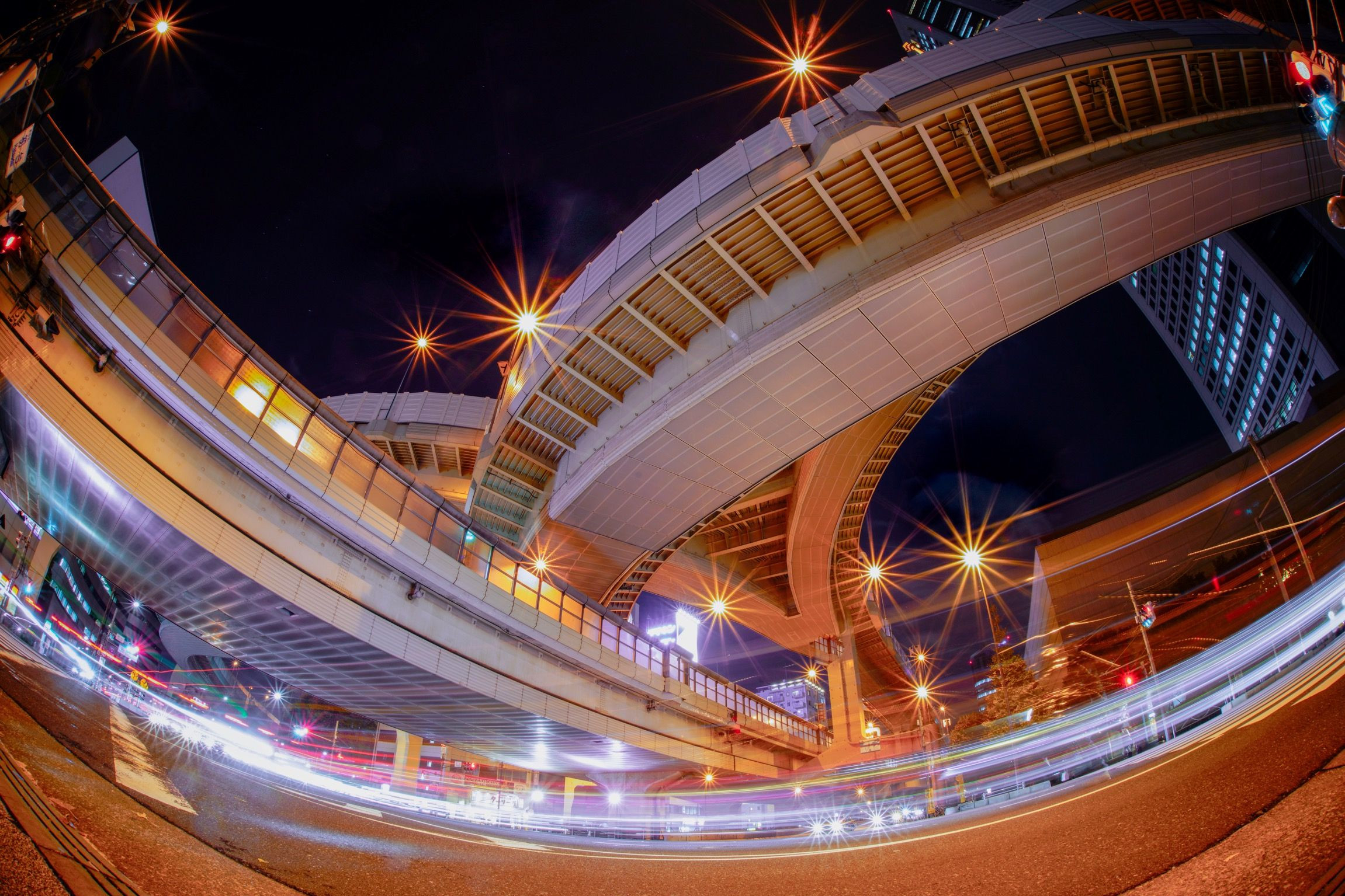 魚眼レンズを使い、西新宿ジャンクションを長時間露光撮影。