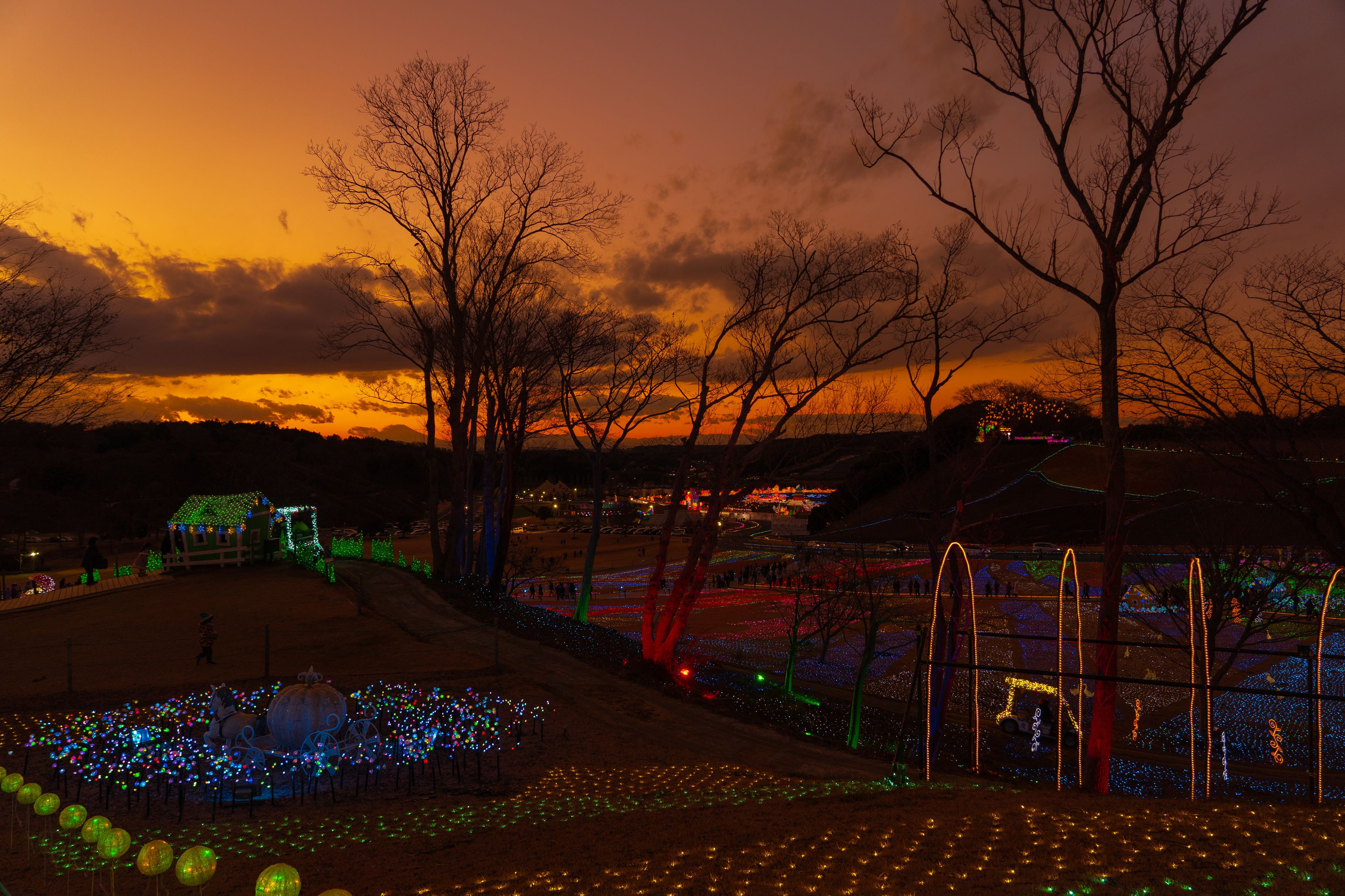 イルミネーションが綺麗に見える前の夕景です。富士山も見えています。 東京ドイツ村(千葉県)にて←いったい何処なんだー