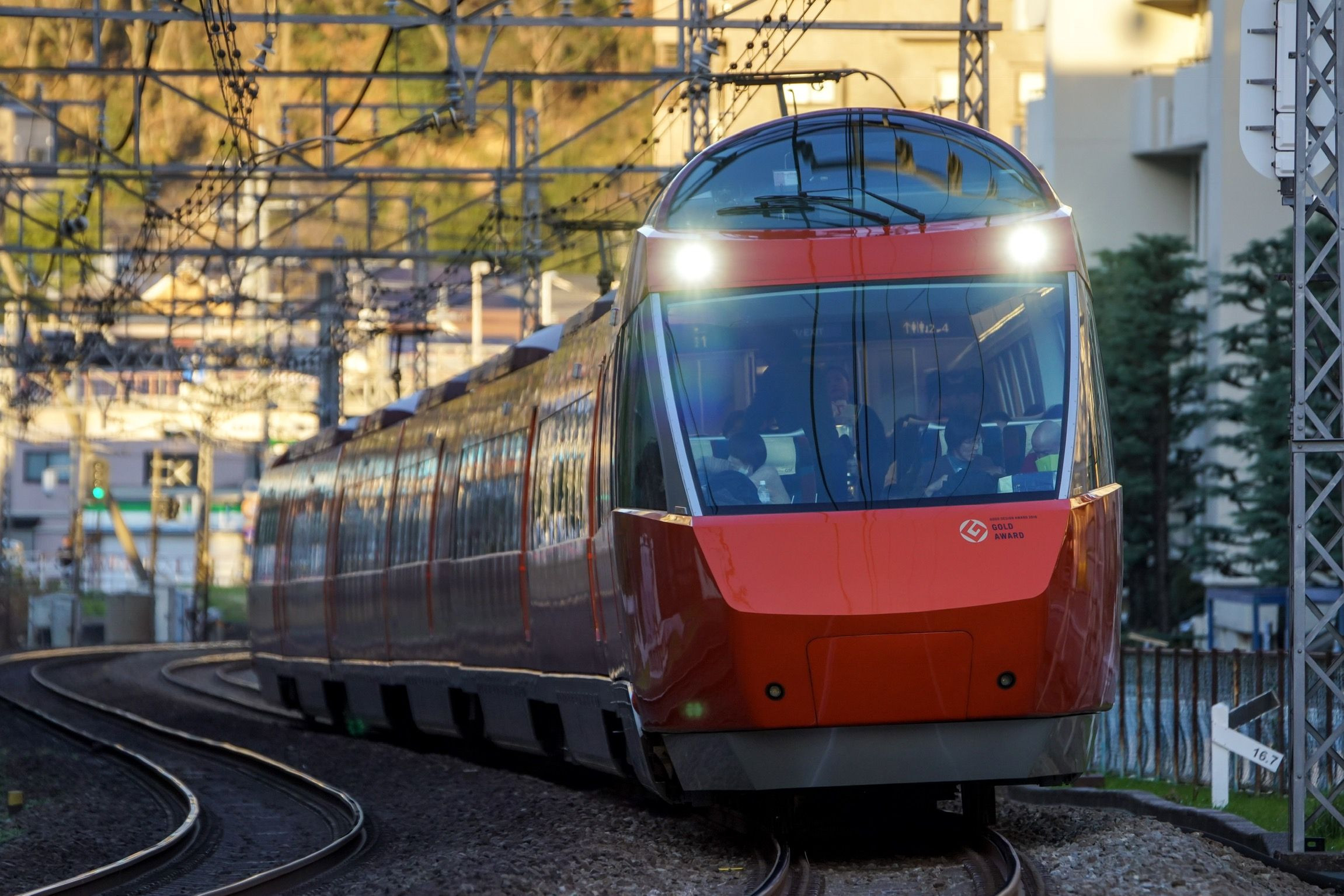 狙いはグッドデザイン賞GOLD AWARDマークを付けたロマンスカーGSEでしたが、陽が当たらず残念な感じに。