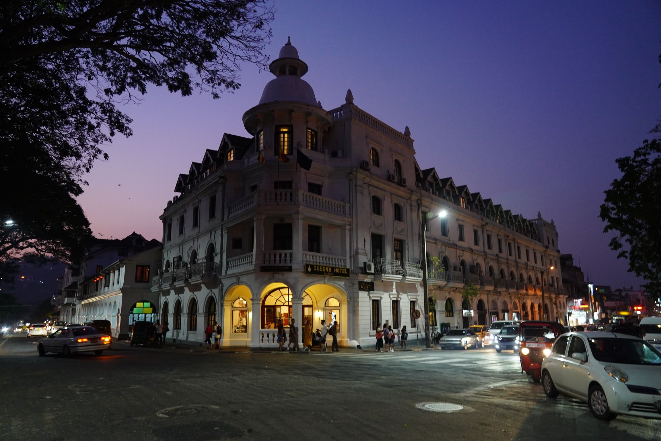 スリランカ 世界遺産古都キャンディにて。 夕景から夜の気配に移り変わる空とコロニアル建築のQUEEN’S HOTEL。 旅情に誘われて。